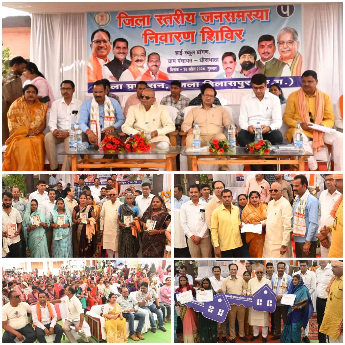 बिलासपुर // बिल्हा ब्लॉक के ग्राम धौराभांठा में आयोजित जनसमस्या निवारण शिविर में शासन की योजनाओं को धरातल पर उतारते हुए ग्रामीणों को सीधे लाभ पहुंचाया गया। प्रशासन ने गांव…
