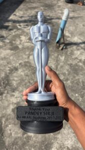 कार्यक्रम के अंत में मनीष ने आभार प्रदर्शन किया। भोजनोपरांत पूर्व छात्रों ने 3डी प्रिंटर से निर्मित ऑस्कर प्रतीक चिन्ह डॉ. धनंजय पाण्डेय को स्मृति चिन्ह के रूप में भेंट किया।
