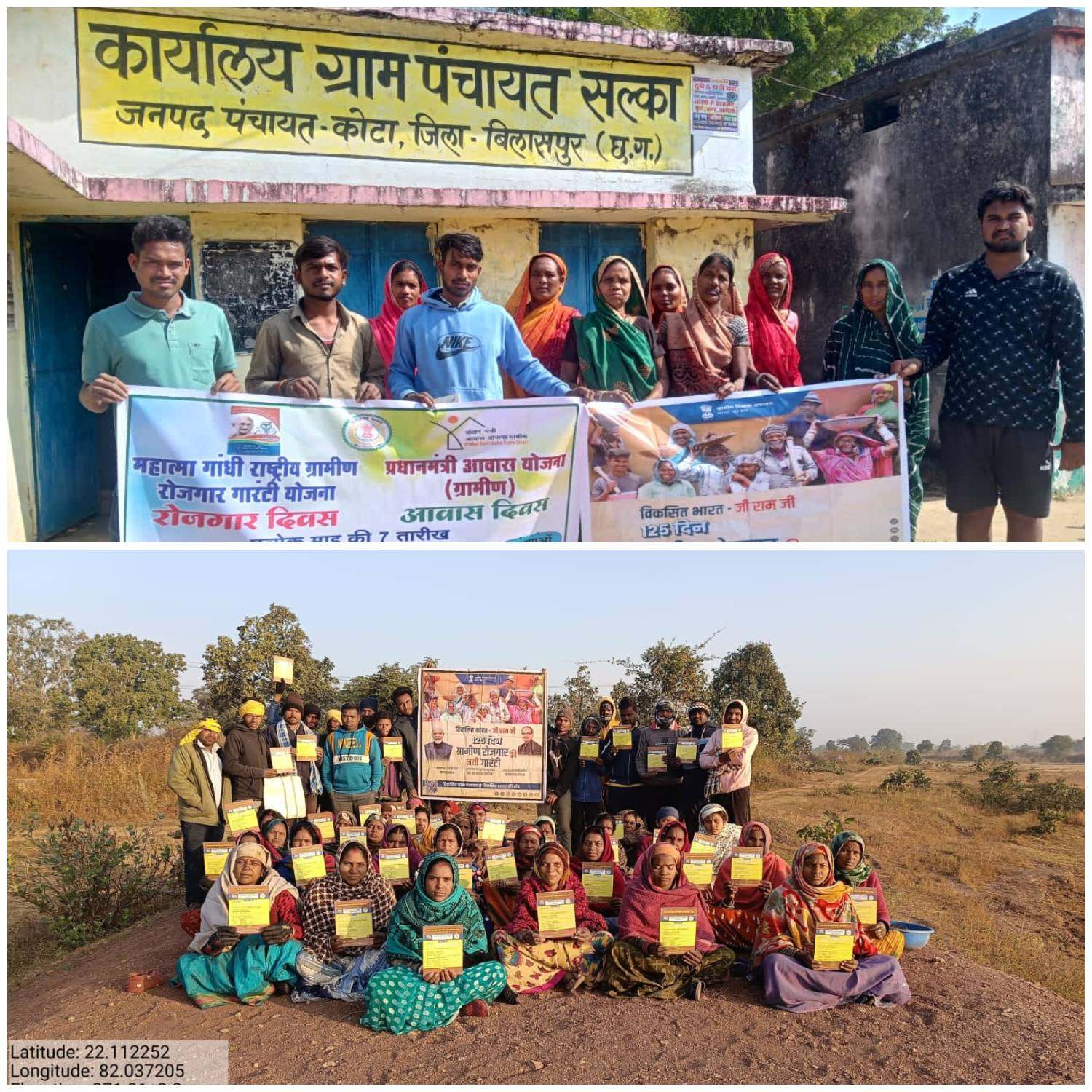 बिलासपुर :— जिले के सभी 486 ग्राम पंचायतों में शासन के निर्देशानुसार रोजगार एवं आवास दिवस का आयोजन किया गया। इस कार्यक्रम का उद्देश्य ग्रामीणों को रोजगार, आवास एवं आजीविका से संबंधित विभिन्न जनकल्याणकारी योजनाओं की जानकारी देना तथा पात्र हितग्राहियों को समयबद्ध और पारदर्शी तरीके से लाभ दिलाना रहा।