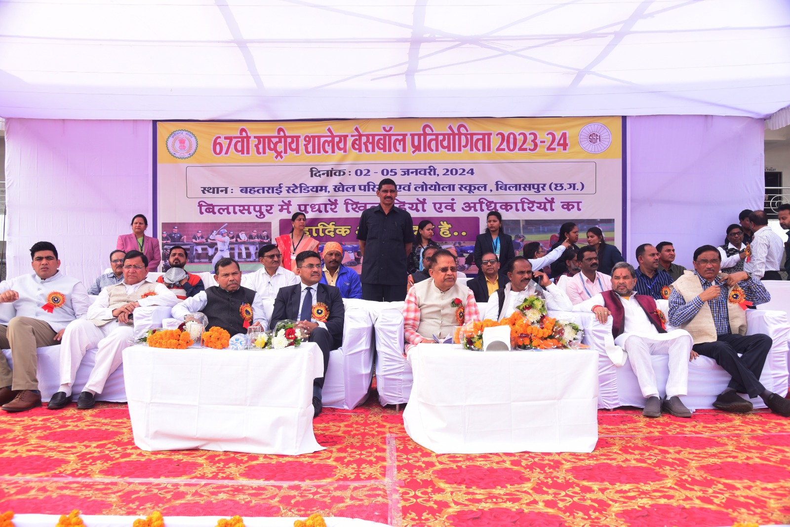 बिलासपुर ·//· 67वीं राष्ट्रीय शालेय क्रीड़ा प्रतियोगिता (बेसबॉल) का स्व. बीआर यादव बहतराई स्टेडियम में शानदार आगाज हुआ। प्रतियोगिता का शुभारंभ बिलासपुर मुख्य अतिथि बिलासपुर विधायक श्री अमर अग्रवाल ने किया । कार्यक्रम में विशिष्ट अतिथि के तौर पर श्री महापौर रामशरण यादव, मस्तूरी विधायक श्री दिलीप लहरिया भी उपस्थित थे। कार्यक्रम में श्री रामदेव कुमावत, कमिश्नर केडी कुंजाम, कलेक्टर श्री अवनीश शरण और नगर निगम कमिश्नर श्री कुणाल दुदावत मौजूद थे।
