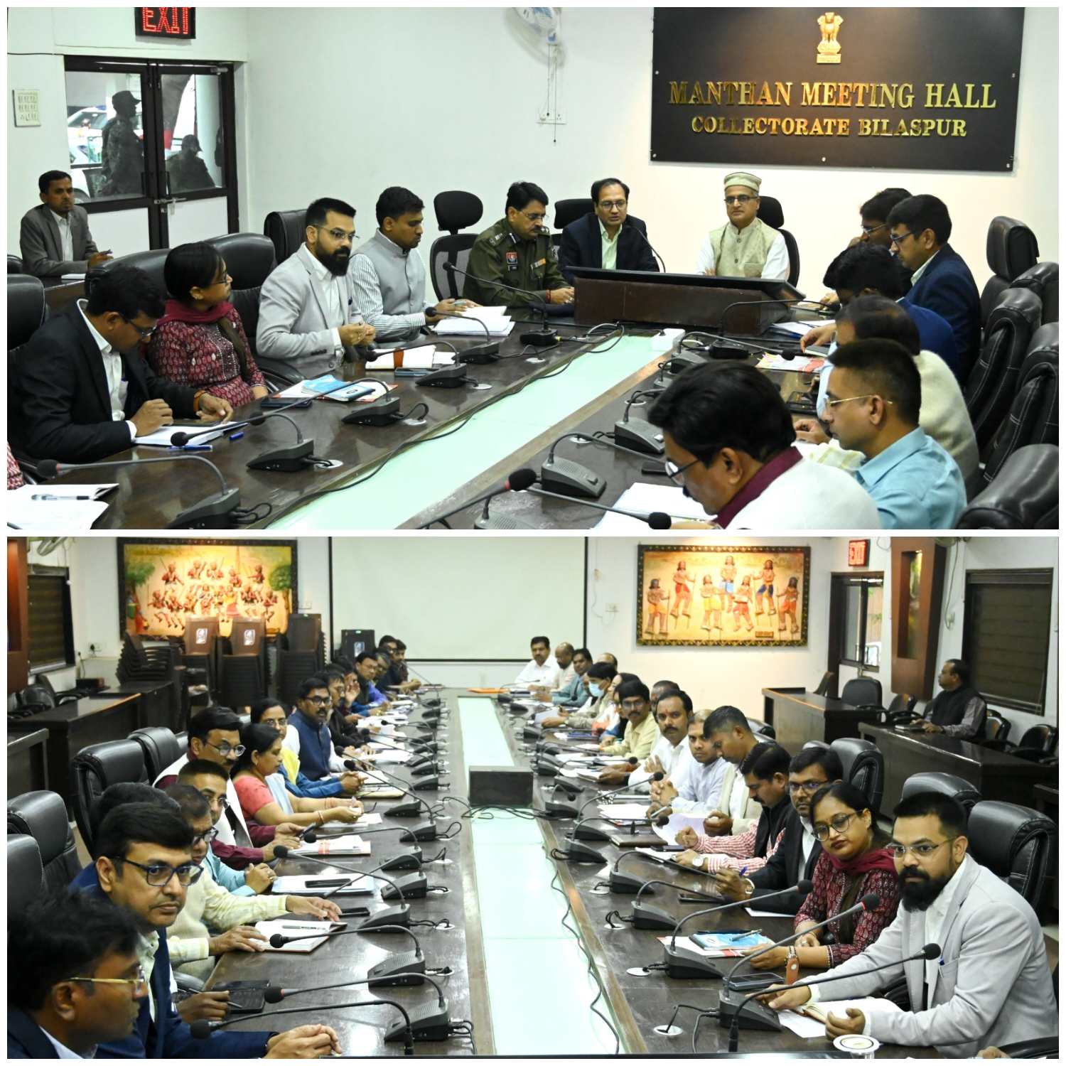 बिलासपुर // लाल बहादुर शास्त्री राष्ट्रीय प्रशासन अकादमी, मसूरी के संचालक श्री श्रीराम तरणिकांति ने जिला कार्यालय के मंथन सभाकक्ष में जिला स्तरीय अधिकारियों के साथ बैठक कर जिले में संचालित विभिन्न विकास कार्यों एवं शासन की प्रमुख फ्लैगशिप योजनाओं के प्रभावी क्रियान्वयन को लेकर विस्तृत चर्चा की। इस अवसर पर संभागायुक्त सुनील जैन, कलेक्टर संजय अग्रवाल, वरिष्ठ पुलिस अधीक्षक रजनेश सिंह, नगर निगम आयुक्त प्रकाश कुमार सर्वे, मुख्य कार्यपालन अधिकारी जिला पंचायत संदीप अग्रवाल, सहायक कलेक्टर अरविंथ कुमारन, एडीएम शिवकुमार बनर्जी सहित विभिन्न विभागों के जिला स्तरीय अधिकारी उपस्थित रहे।