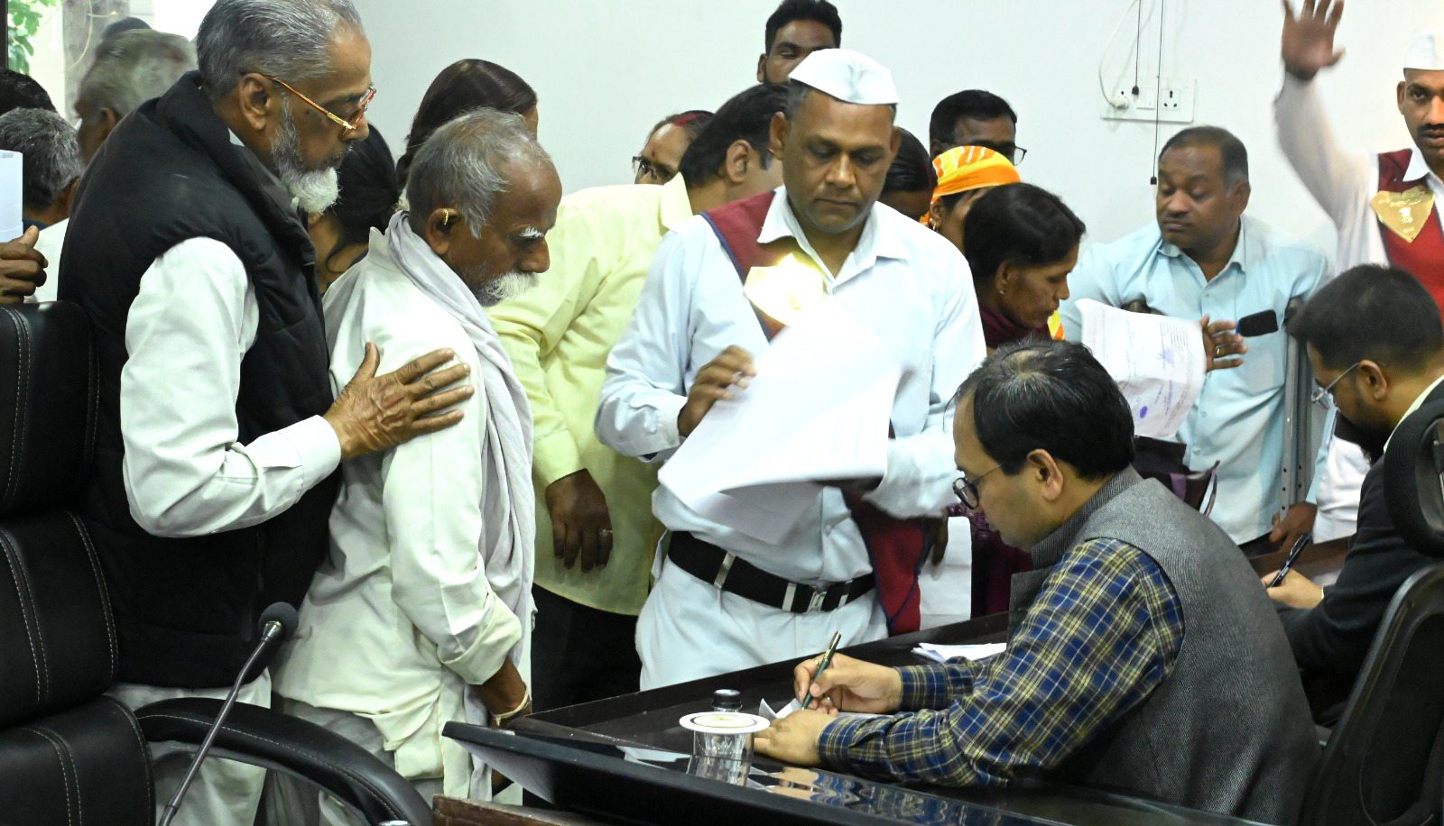 बिलासपुर // कलेक्टर संजय अग्रवाल ने साप्ताहिक जनदर्शन में दूर-दराज से पहुंचे ग्रामीणों की फरियाद सुनी। उन्होंने जनदर्शन में आए प्रत्येक व्यक्ति से उनका आवेदन लिया और आवश्यक कार्रवाई के लिए अधिकारियों को निर्देशित किया। लोगों ने जनदर्शन में व्यक्तिगत एवं सामुदायिक हित से जुड़े विभिन्न विषयों को लेकर समस्याओं के निराकरण के लिए आवेदन दिया। एडीएम श्री शिवकुमार बनर्जी और जिला पंचायत सीईओ श्री संदीप अग्रवाल ने भी लोगों की समस्याओं को सुना।