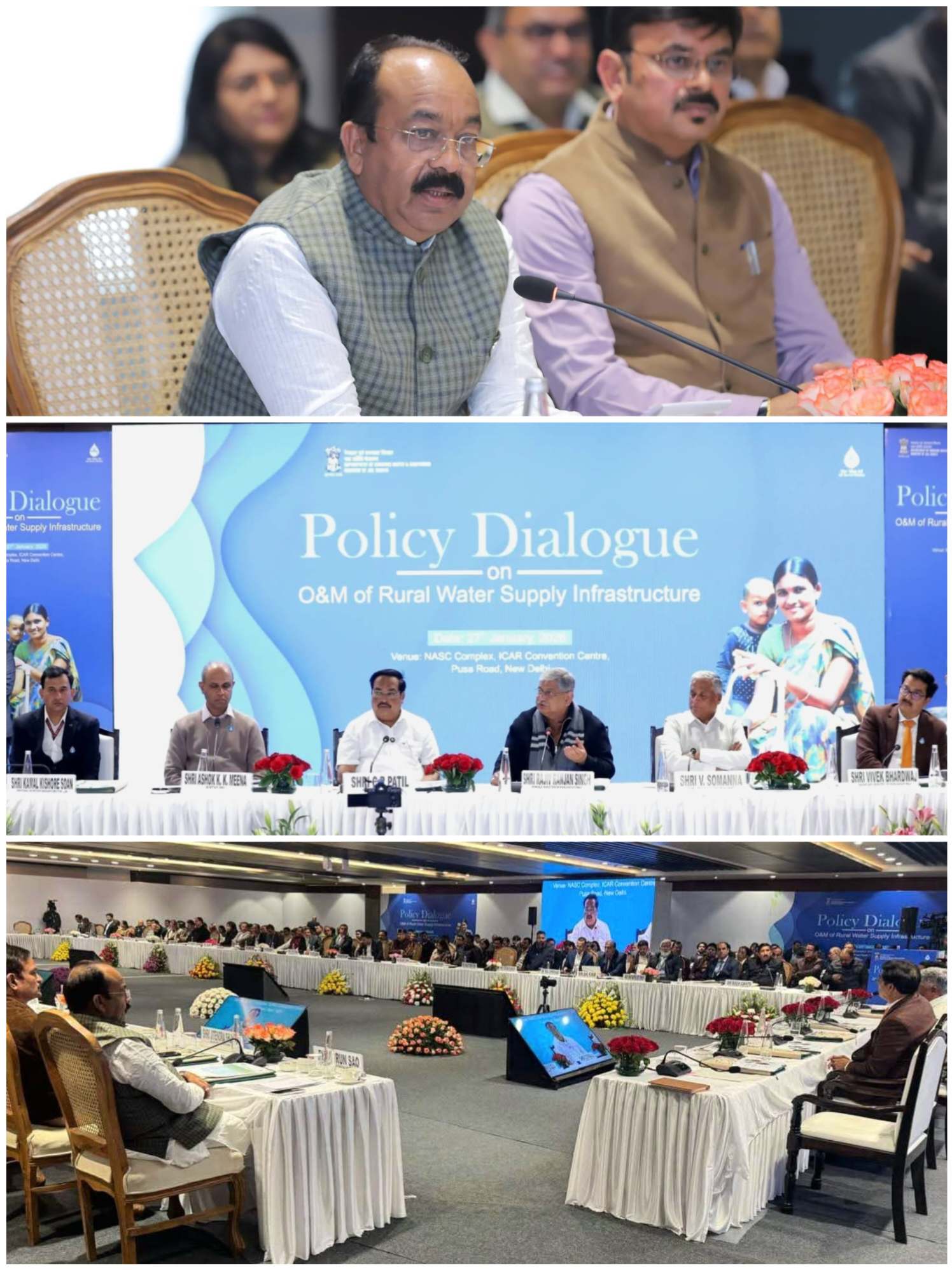 बिलासपुर 27 जनवरी 2026 :— उप मुख्यमंत्री तथा लोक स्वास्थ्य यांत्रिकी मंत्री अरुण साव भारत सरकार द्वारा जल जीवन मिशन के अंतर्गत ग्रामीण पेयजल सेवाओं के प्रभावी संचालन एवं अनुरक्षण (O&M) के लिए आयोजित मिनिस्टर्स लेवल पॉलिसी डायलॉग ऑन सस्टेनेबल ओएंडएम ऑफ रुरल ड्रिंकिंग वाटर सर्विसेस (Ministers Level Policy Dialogue on Sustainable O&M of Rural Drinking Water Services) में शामिल हुए। नई दिल्ली में आज आयोजित इस महत्वपूर्ण नीति संवाद की अध्यक्षता केंद्रीय जल शक्ति मंत्री सी.आर. पाटिल एवं केंद्रीय पंचायती राज मंत्री राजीव रंजन सिंह ने की। बैठक में केंद्रीय जल शक्ति राज्य मंत्री वी. सोमन्ना, भारत सरकार के सचिव एवं अतिरिक्त सचिव सहित देश के विभिन्न राज्यों के लोक स्वास्थ्य यांत्रिकी विभाग, ग्रामीण विकास एवं पंचायती राज विभाग के मंत्री भी शामिल हुए। इस संवाद कार्यक्रम में भारत सरकार और विभिन्न राज्यों के बीच ग्रामीण जलापूर्ति व्यवस्था को दीर्घकालिक, सुदृढ़ एवं प्रभावी बनाने गहन विचार-विमर्श किया गया।