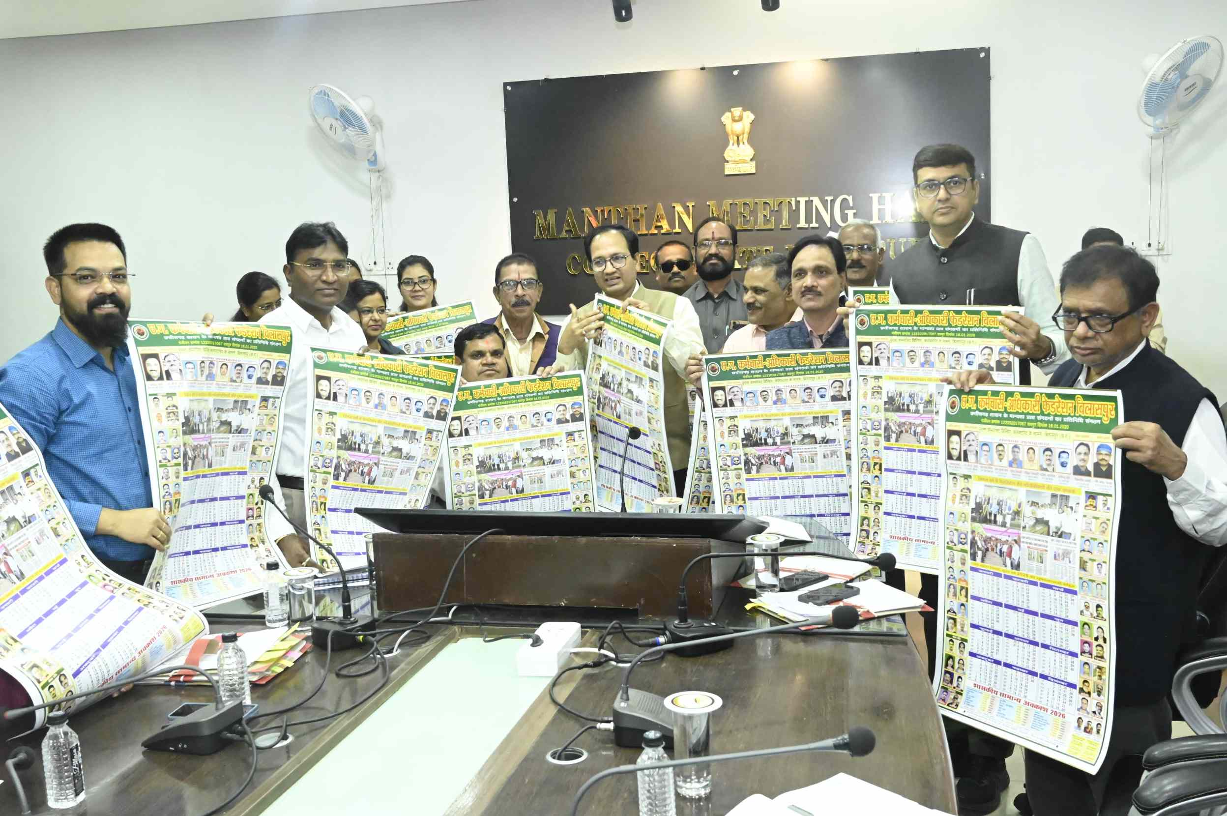 बिलासपुर // कलेक्टर संजय अग्रवाल ने छत्तीसगढ़ कर्मचारी-अधिकारी फेडरेशन के वार्षिक कैलेण्डर का विमोचन आज जिला कार्यालय के मंथन सभाकक्ष में किया। इस दौरान छत्तीसगढ कर्मचारी अधिकारी फेडरेशन के जिला संयोजक डॉ बी. पी सोनी, महासचिव किशोर शर्मा, सुनील कौशिक, अश्वनी पोण्डेय, निरकार तिवारी, आलोक पराजपे चन्द्रपकाश साहू, रमेश द्विवेदी, अशोक ब्रम्हभटट, शेफाली पाण्डेय, श्वेता गन्धर्व, पूजा आहिरे, नेहा रजक, नेहा आगिरे, डॉ. टी. डी. सरजाल, डॉ. वीरेन्द्र पिल्ले, डॉ. ए.एस. रघुवंशी, डॉ. एल पी मनहर, डॉ राम ओत्तलवार, डॉ हेमंत नेताम एवं श्री उमेश कश्यप उपस्थित रहे। अंत में छत्तीसगढ़ कर्मचारी अधिकारी फेडरेशन महासचिव किशोर शर्मा के द्वारा आभार प्रदर्शन किया गया।