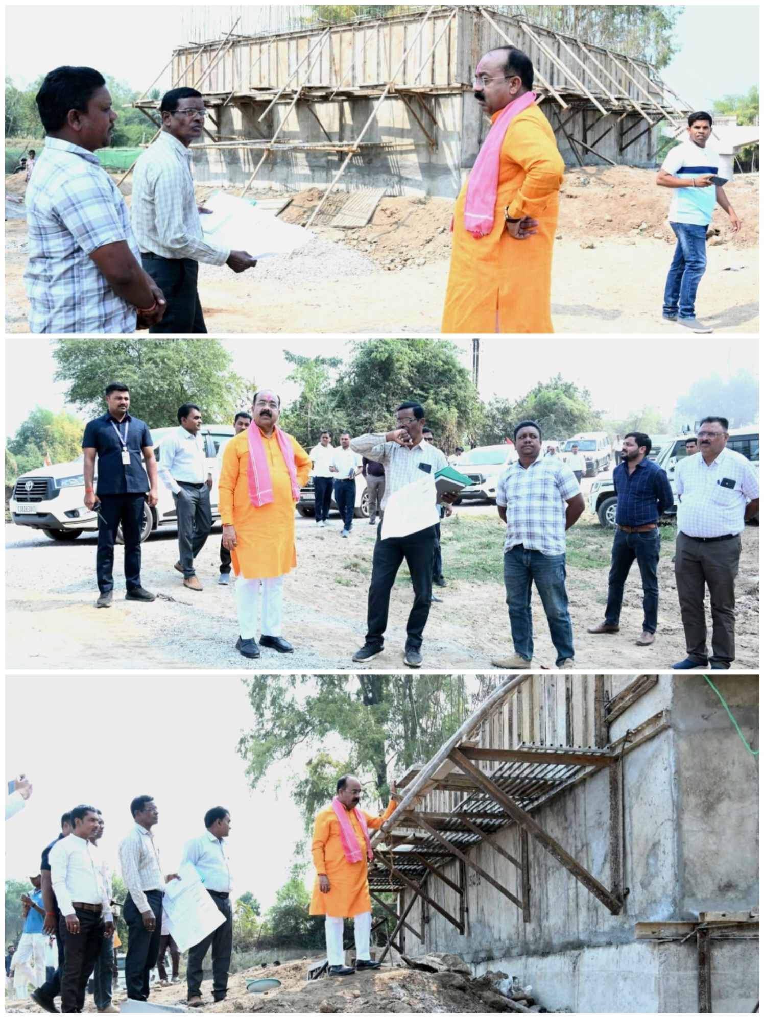 बिलासपुर :— उप मुख्यमंत्री एवं लोक निर्माण मंत्री अरुण साव ने अपने लोरमी प्रवास के दौरान ग्राम कारीडोंगरी और दरवाजा के मध्य मनियारी नदी पर निर्माणाधीन पुल के कार्य का औचक निरीक्षण किया। उन्होंने निर्माण कार्य की धीमी गति पर कड़ी नाराजगी जताते हुए संबंधित अधिकारियों और ठेकेदार को बरसात से पहले हर हाल में पुल का कार्य पूर्ण करने के निर्देश दिए।