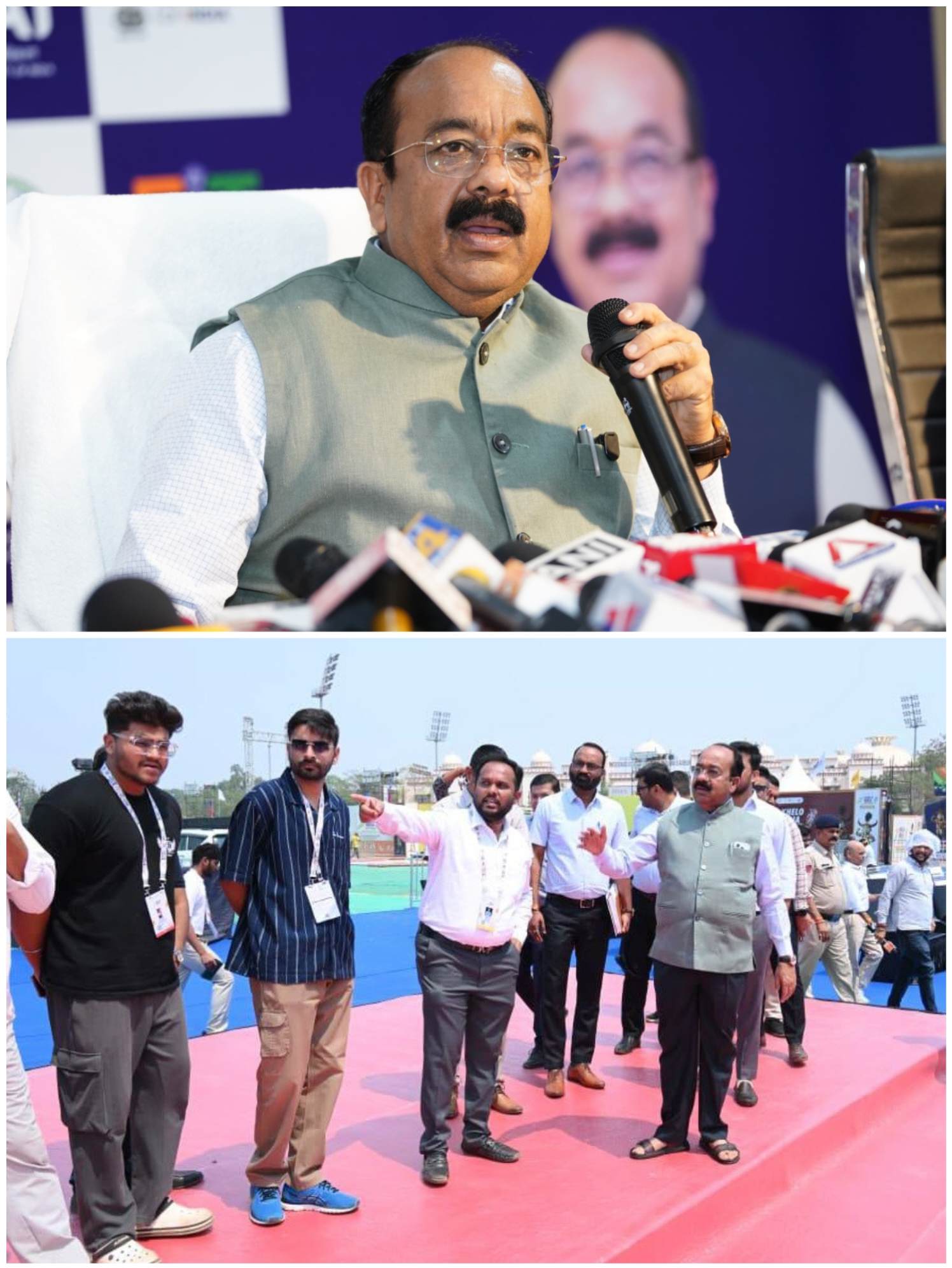 बिलासपुर :— उप मुख्यमंत्री तथा खेल एवं युवा कल्याण मंत्री अरुण साव ने रायपुर में खेलो इंडिया ट्राइबल गेम्स के शुभारंभ एवं खेल स्थल का निरीक्षण कर तैयारियों का जायजा लिया। उन्होंने तैयारियों में लगे अधिकारियों और एजेंसियों को कार्यों में तेजी लाते हुए सभी व्यवस्थाएं समय पर एवं पुख्ता रूप से सुनिश्चित करने के निर्देश दिए। खेल एवं युवा कल्याण विभाग के सचिव यशवंत कुमार भी इस दौरान मौजूद थे।