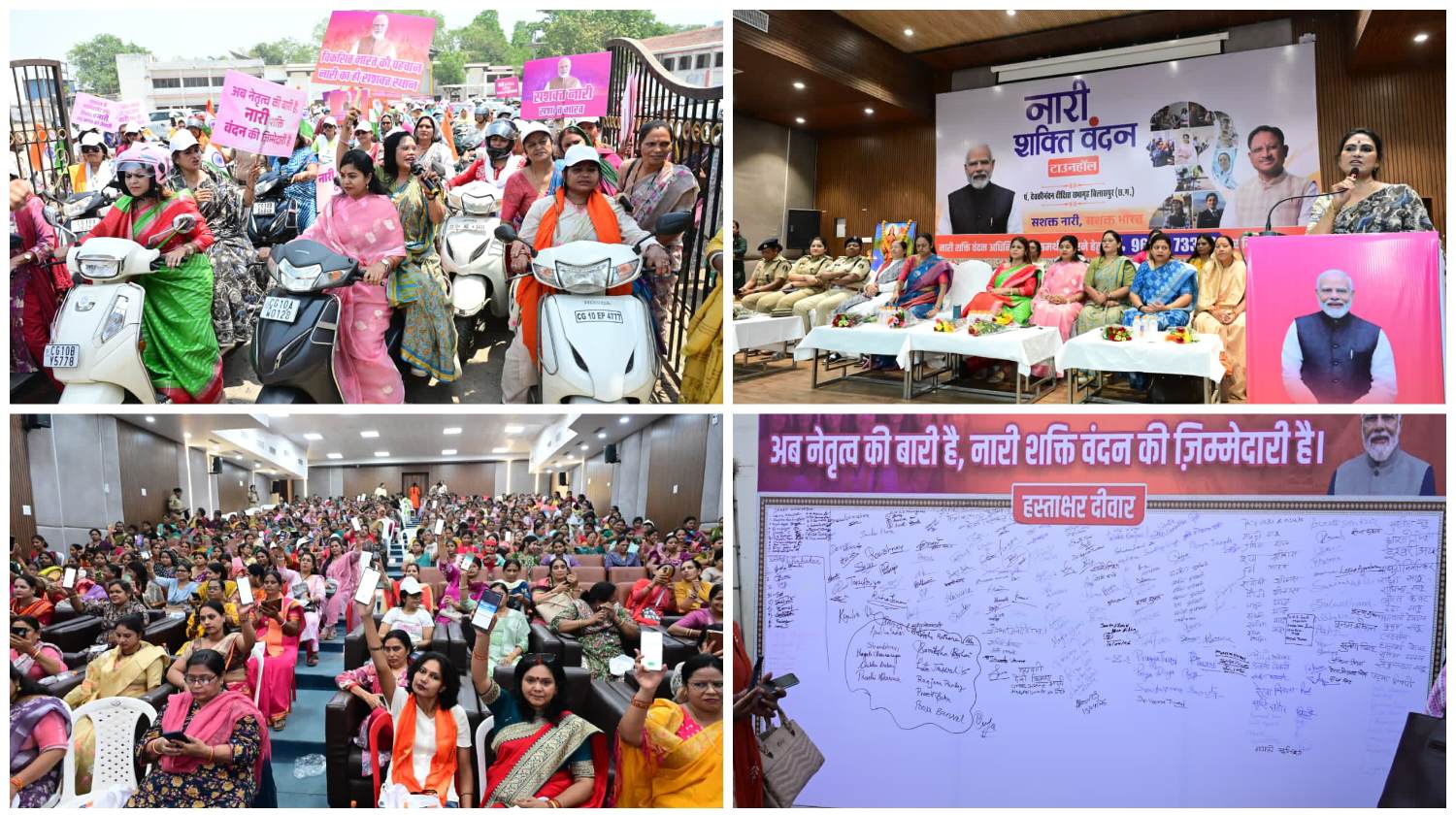 महापौर पूजा विधानी ने अपने संबोधन में कहा कि नारी शक्ति वंदन अधिनियम महिलाओं के सशक्तिकरण की दिशा में एक ऐतिहासिक पहल है, जो उन्हें निर्णय प्रक्रिया में समान भागीदारी सुनिश्चित करेगा। उन्होंने कहा कि संसद और विधानसभाओं में 33 प्रतिशत आरक्षण का यह प्रावधान महिलाओं के आत्मविश्वास को नई ऊंचाइयों तक ले जाएगा। प्रधानमंत्री नरेंद्र मोदी के प्रति आभार व्यक्त करते हुए उन्होंने कहा कि उनके नेतृत्व में महिलाओं के सम्मान, सुरक्षा और स्वावलंबन को अभूतपूर्व बढ़ावा मिला है और यह अधिनियम महिलाओं के उज्ज्वल भविष्य का मार्ग प्रशस्त करेगा। राज्य महिला आयोग की पूर्व अध्यक्ष हर्षिता पांडे ने अपने ओजस्वी उद्बोधन में कहा कि नारी शक्ति वंदन कार्यक्रम आधी आबादी को पूरा हक देने का कार्यक्रम है, जो महिलाओं को समान अधिकार, सम्मान और नेतृत्व के अवसर प्रदान कर राष्ट्र निर्माण में उनकी भागीदारी को सशक्त बनाने की दिशा में एक महत्वपूर्ण कदम है। उन्होंने कहा कि भारत की संस्कृति में नारी को सदैव शक्ति, साहस और सृजन का प्रतीक माना गया है। “यत्र नार्यस्तु पूज्यन्ते, रमन्ते तत्र देवता” की भावना को आत्मसात करते हुए यह पहल महिलाओं को उनका अधिकार दिलाने की दिशा में ऐतिहासिक साबित होगा। उन्होंने बिलासपुर को शक्ति की पावन भूमि बताते हुए कहा कि यहां आदिशक्ति मां महामाया विराजमान हैं, जिनकी कृपा से महिलाओं को निरंतर प्रेरणा और ऊर्जा मिलती है। साथ ही उन्होंने वीरांगना बिलासा देवी का स्मरण करते हुए कहा कि यह धरती नारी साहस और स्वाभिमान की गौरवशाली परंपरा की साक्षी रही है, जिसे आज की महिलाएं आगे बढ़ा रही हैं।