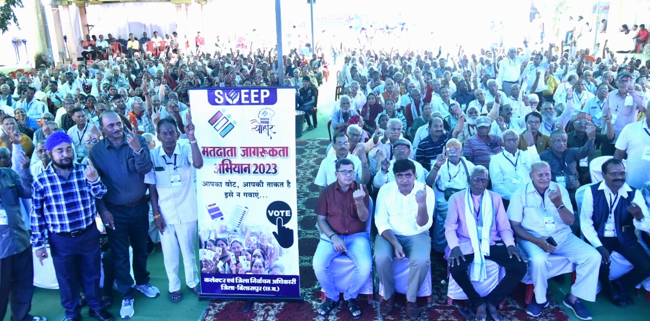 बिलासपुर // अंतर्राष्ट्रीय वृद्धजन दिवस के अवसर पर शासकीय देवकीनंदन कन्या उच्चतर माध्यमिक शाला में मतदाता जागरूकता अभियान का आयोजन किया गया। इस अवसर पर कलेक्टर श्री संजीव कुमार झा ने कार्यक्रम में उपस्थित वरिष्ठजनों से साल के अंत में होने वाले विधानसभा निर्वाचन सहित अन्य निर्वाचनों में अपने मताधिकार का उपयोग करने की अपील की। कलेक्टर ने इस दौरान सभी वरिष्ठजनों एवं कार्यक्रम में मौजूद लोगों को मतदाता शपथ दिलाई। जिले में आगामी विधानसभा निर्वाचन के मद्देनजर विभिन्न गतिविधियों के तहत स्वीप कार्यक्रम का आयोजन किया जा रहा है। कार्यक्रम में नगर निगम कमिश्नर श्री कुणाल दुदावत भी मौजूद थे।
