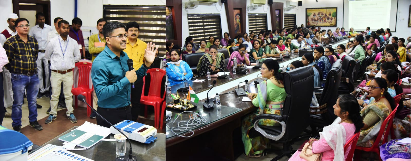 बिलासपुर // लोकसभा चुनाव के लिए संगवारी महिला मतदान केंद्र में ड्यूटी वाले महिला कर्मचारियों को चुनाव प्रशिक्षण दिया गया। कलेक्टर एवं जिला निर्वाचन अधिकारी अवनीश शरण ने मतदान की पूरी प्रक्रिया रोचक तरीके से समझाई। उन्होंने ईवीएम और वीवीपेट मशीन के बारे से सरलता से बताया और रोचक सवाल जवाब भी किए।