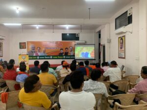 करबला रोड स्थित जिला भाजपा कार्यालय में उत्साह और उमंग को सेलिब्रेट करने के कार्यक्रम किए गए कार्यालय परिसर में एल ई डी स्क्रीन के माध्यम से शपथ ग्रहण समारोह का लाइव प्रसारण किया गया कार्यक्रताओं ने आतिशबाजी की ओर एक दूसरे का मुंह मीठा किया