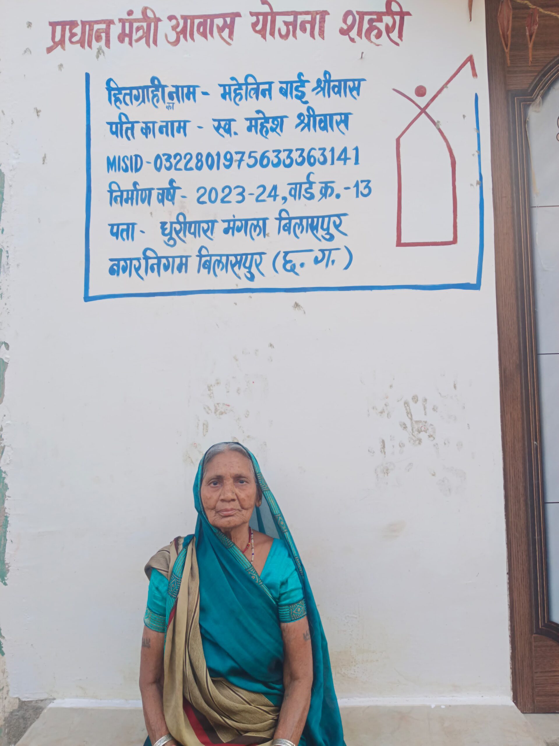 बिलासपुर // प्रधानमंत्री आवास योजना, शहरी से मंगला धुरीपारा की रहने वाली महेत्रीन बाई का पक्के आवास का सपना साकार हो गया है, उम्र के इस पड़ाव पर सरकार की इस योजना से पक्का घर मिलने से महेत्रिन बाई ने सरकार को ध्यान्यवाद दिया है।