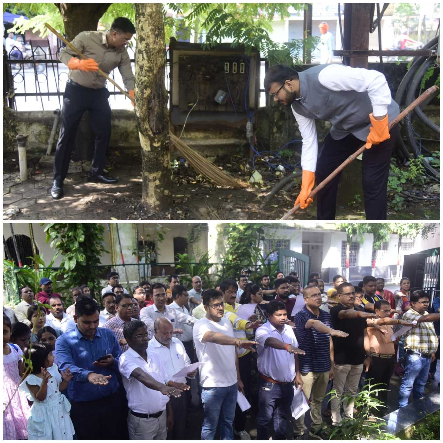 बिलासपुर // गांधी जयंती पर सरकारी कार्यालयों में स्वच्छता ही सेवा पखवाड़ा के समापन पर स्वच्छता अभियान चलाया गया। कार्यालयों के भीतर और बाहर साफ – सफाई की गई। जिला कार्यालय में कलेक्टर अवनीश शरण के नेतृत्व में सफाई अभियान चला। शरण ने झाड़ू थामी और परिसर की सफाई की। फावड़े से कचरा उठाकर धमेला में एकत्र किया और कचरा वाहनों को इसे सौंपा। उन्होंने कपड़ा लेकर अपने टेबल, संदर्भ पुस्तकों और फाइलों की सफाई भी की। उन्हें तरतीब से जमाया। कलेक्टर ने गांधी जी की प्रतिमा के समक्ष अधिकारी कर्मचारियों को स्वच्छता शपथ भी दिलाई। ओल्ड और न्यू कंपोजिट बिल्डिंग, जिला पंचायत और निगम कार्यालय में भी सफाई अभियान चलाया गया। निगम आयुक्त अमितकुमार, जिला पंचायत सीईओ आरपी चौहान, एडीएम आरए कुरुवांशी, एडीएम शिवकुमार बैनर्जी सहित तमाम अधिकारी कर्मचारियों ने अभियान में हाथ बंटाया। सफाई के बाद कार्यालयों की सुंदरता निखर आई।