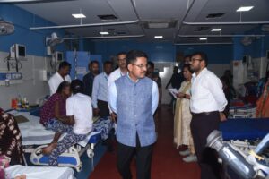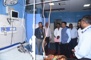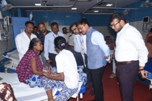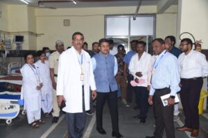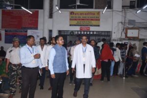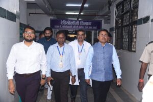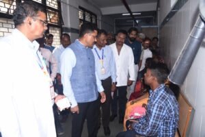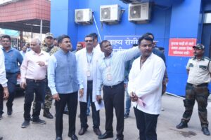 बिलासपुर // कलेक्टर अवनीश शरण ने सिम्स अस्पताल का औचक निरीक्षण किया। उन्होंने विभिन्न वार्डों का दौरा कर व्यवस्थाओं का जायजा लिया। इलाज कराने आए मरीजों से मुलाकात कर कुशलक्षेम पूछा। भोजन की गुणवत्ता का जायजा लिया। कलेक्टर ने मरीजों को बेहतर चिकित्सा सुविधा मुहैया कराने के निर्देश दिए। निरीक्षण के दौरान नगर निगम आयुक्त श्री अमित कुमार, सिम्स के डीन डॉ. रमणेश मूर्ति और अस्पताल अधीक्षक डॉ. लखन सिंह सहित अन्य विभागीय अधिकारी मौजूद थे।