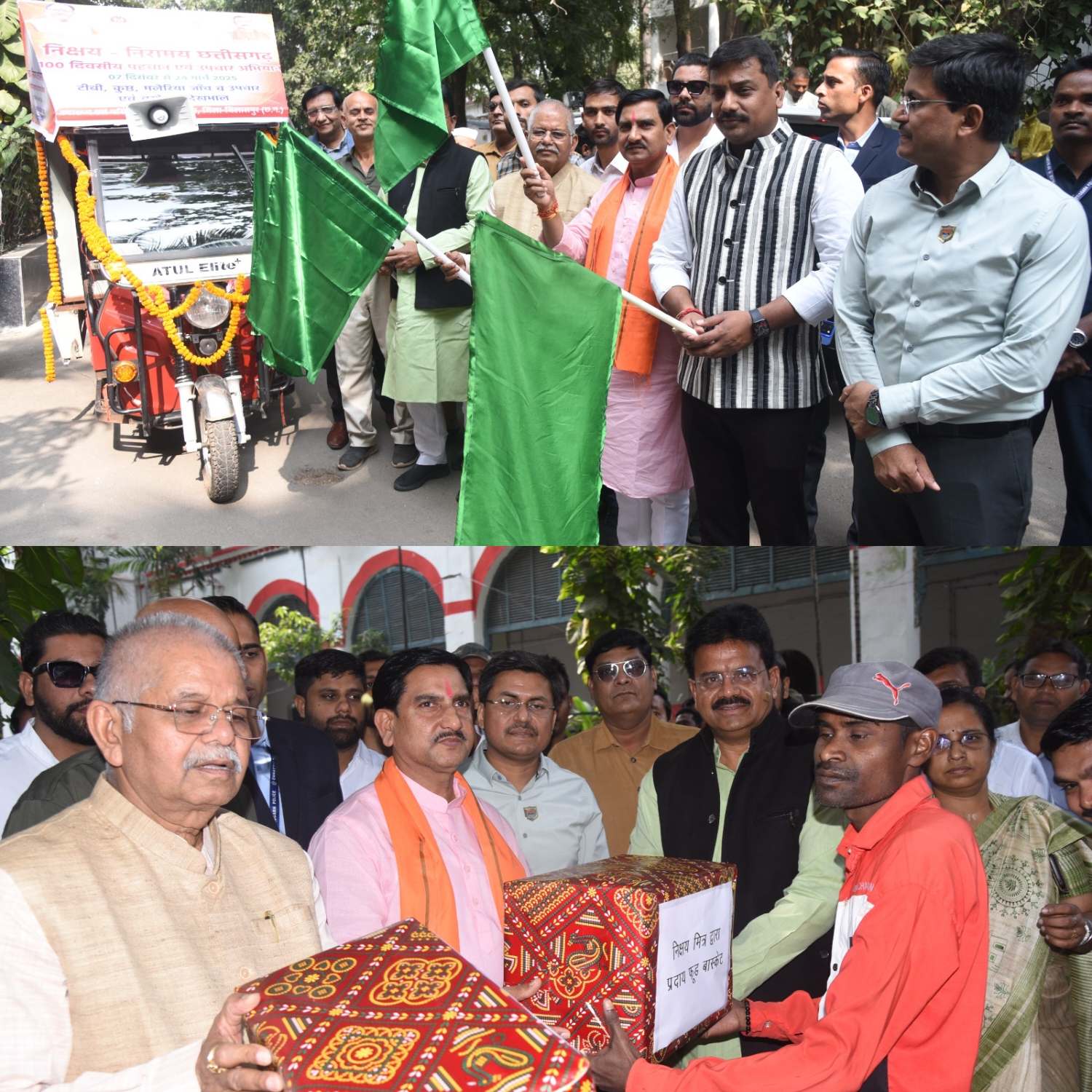 बिलासपुर // निक्षय निरामय छत्तीसगढ़ अभियान बिलासपुर सहित राज्य में आज से शुरू हो गया। 100 दिनों का यह सघन अभियान 23 मार्च 2025 तक चलेगा। केंद्रीय शहरी विकास मंत्री श्री तोखन साहू ने जिला कार्यालय परिसर से इस अभियान के लिए समर्पित प्रचार वाहनों को हरी झंडी दिखाई। उन्होंने अभियान की सफलता के लिए शुभकामनाएं दी। इन वाहनों के माध्यम से लोगों को टीबी और कुष्ठ रोग के इलाज के लिए जागरूक किया जाएगा।टीबी और कुष्ठ बीमारी की पहचान की जाएगी। स्वास्थ्य विभाग की टीम घर घर पहुंच कर सर्वे करेगी। बीमारी की पुष्टि के लिए नमूना लिया जाएगा। पुष्ट होने पर सरकारी अस्पतालों में निःशुल्क इलाज किया जाएगा। उन्होंने 5 टीबी मरीजों को पोषण युक्त भोजन पैकेट भी वितरित किया। योजना के अंतर्गत बेहतर कार्य करने वाले स्वयं सेवकों और कर्मचारियों को प्रशस्ति पत्र देकर सम्मानित भी किया। गौरतलब है कि फिलहाल लगभग 2000 टीबी और 400 के करीब कुष्ठ रोगी जिले में चिन्हित हैं, जिनका इलाज निःशुल्क रूप से सरकारी अस्पतालों में किया जा रहा है। इस अवसर पर विधायक धरम लाल कौशिक, सुशांत शुक्ला, अटल श्रीवास्तव, धरमजीत सिंह, दिलीप लहरिया, कलेक्टर अवनीश शरण, सीएमएचओ डॉ अनिल श्रीवास्तव सहित जनप्रतिनिधि और अधिकारी गण उपस्थित थे।