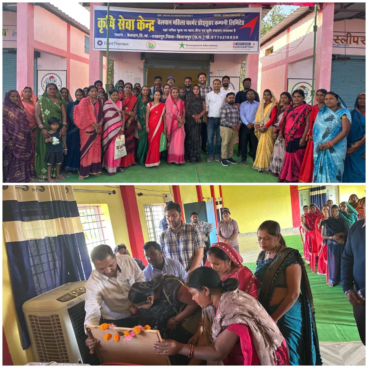 छत्तीसगढ़ // विकासखंड तखतपुर के ग्राम पंचायत बेलपान में दिन बुधवार को जीटी भारत एवं एचडीएफसी बैंक परिवर्तन योजना के तहत गठित बेलपान महिला फार्मर प्रोड्यूसर कंपनी लिमिटेड के द्वारा बीज, खाद् एवं कीटनाशक के दुकान का उद्घाटन किया गया इस कंपनी में अभी तक कुल 249 महिला किसान जुड़ चुके है ! कंपनी का उद्देश्य लोगों को अपने साथ जोड़कर खेती में होने वाले लागत को कम कर आजीविका गतिविधियों से जोड़कर आय में वृद्धि कराना है! कार्यक्रम की शुभारंभ आयोजित कार्यक्रम में उपस्थित अतिथि श्री शशांक शर्मा जी (बीपीएम) जनपद पंचायत तखतपुर, श्री योगेश शर्मा जी, बिलासपुर जीटी परिवार एवं दीदीयो के द्वारा छत्तीसगढ़ महतारी के प्रतिमा पर माल्यार्पण एवं पूजा अर्चना कर किया गया! हरेकृष्ण देवांगन क्लस्टर मैनेजर) के द्वारा फार्मर प्रोड्यूसर कंपनी के विषय पर विस्तृत जानकारी दिया गया! श्री योगेश शर्मा जी के द्वारा फार्मर प्रोड्यूसर कंपनी से महिला किसान के जुड़ने के लाभ एवं आजीविका गतिविधि और उनके प्रशिक्षण के अवसर से आर्थिक स्थिति सुदृढ़ करने के बारे मे बताया गया! कार्यक्रम के मुख्य अतिथि श्री शशांक शर्मा जी के द्वारा फार्मर प्रोड्यूसर कंपनी बारे मे विस्तृत जानकारी देने के साथ साथ एफपीसी और एनआरएलएम के आजीविका गतिविधियों को एक साथ मिलकर बढ़ाने के लिए सभी दीदीयो को प्रोत्साहित किया गया! इस कार्यक्रम मे जनपद पंचायत से राष्ट्रीय ग्रामीण आजीविका मिशन बीपीएम श्री शशांक शर्मा जी जीटी भारत से श्री योगेश शर्मा जी, भूपेंद्र पांडे जी, नोमेश तिवारी जी अरविंद तिवारी जी, अभिषेक जायसवाल जी एवं प्रफुल्ल जी उपस्थित रहे!