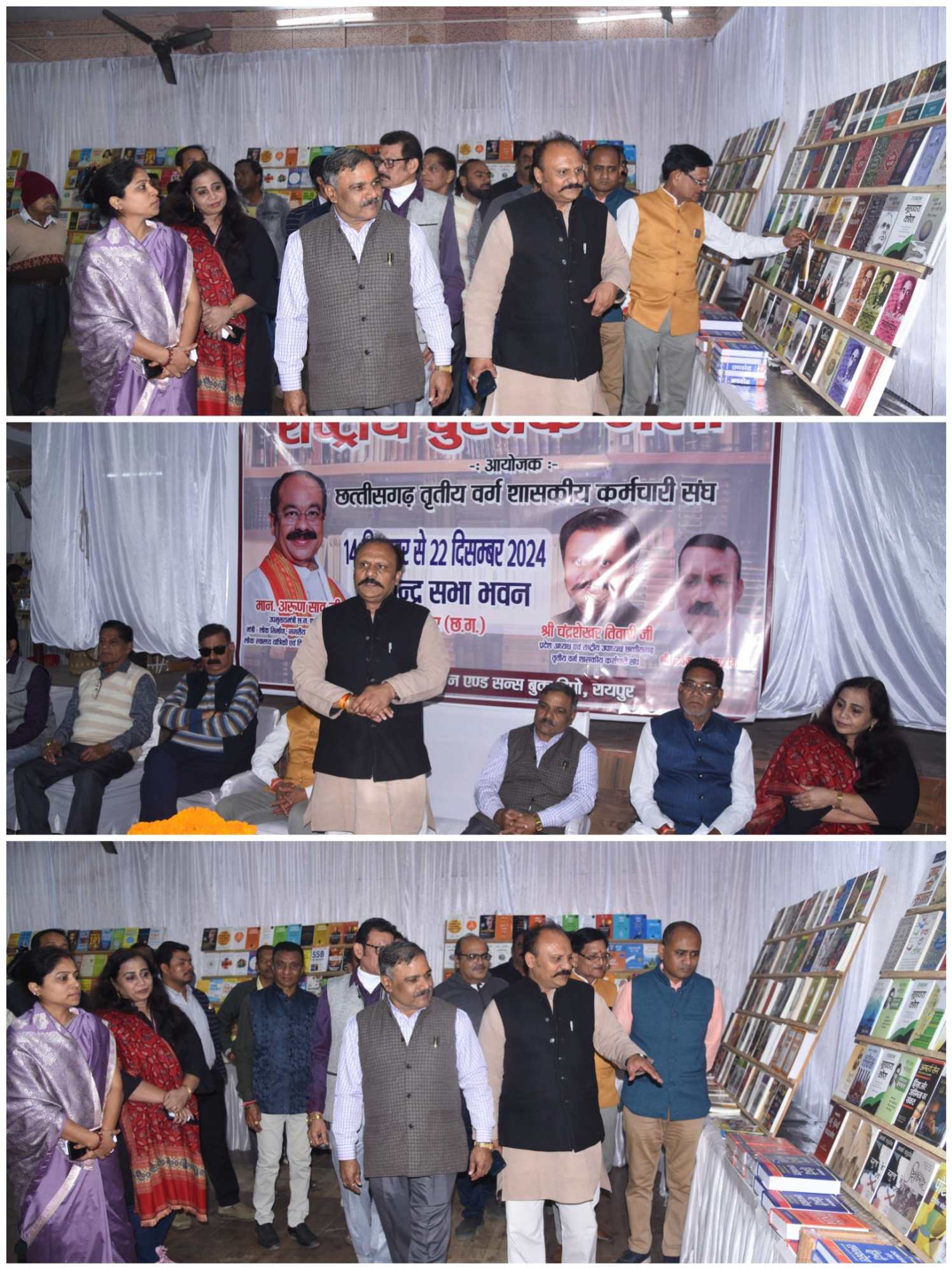 पुस्तक मेले के शुभारंभ अवसर पर तृतीय वर्ग कर्मचारी संघ के बी पी सोनी ज़िला संयोजक, देवेन्द्र पटेल प्रांतीय संरक्षक , चन्द्रशेखर पाण्डेय जिलाध्यक्ष,आर पी शर्मा, पी आर कौशिक जिला संरक्षक, देवेन्द्र ठाकुर सचिव ,कौशल कौशिक, महिला प्रकोष्ठ सेडाॅ पूनम सिंह,डाक विभाग से श्रीमती सुनीता द्विवेदी व संघ के पदाधिकारी बड़ी संख्या में मौजूद थे।