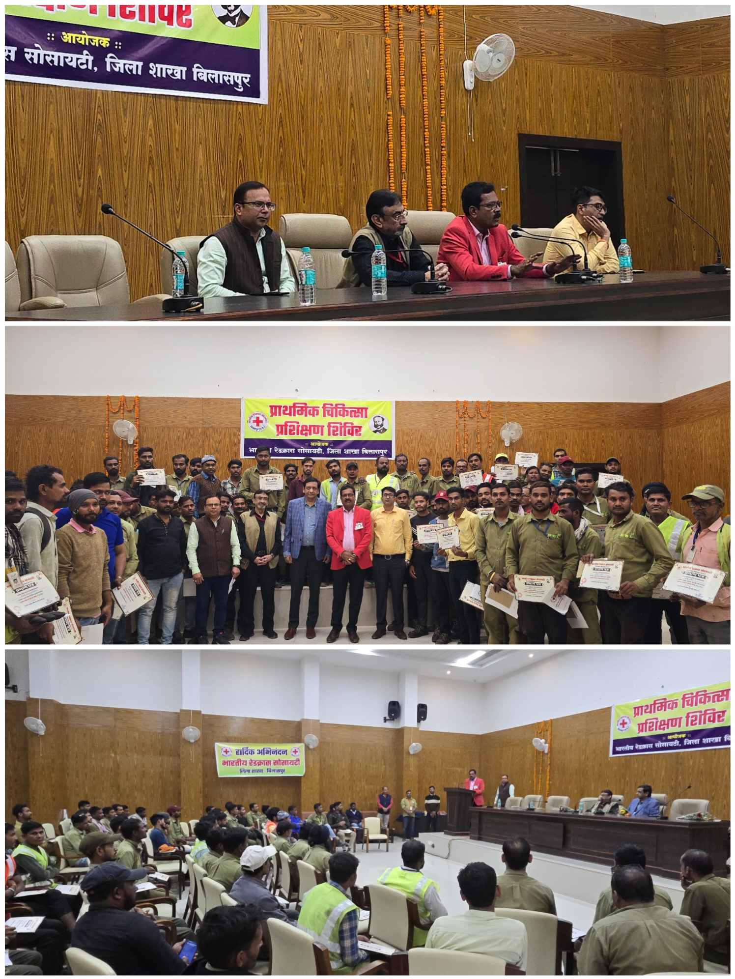 बिलासपुर // न्यू सर्किट हाउस में आयोजित प्रशिक्षण शिविर में डॉ. अनिल श्रीवास्तव मुख्य चिकित्सा एवं स्वा. अधिकारी तथा सचिव भारतीय रेडकास सोसायटी ने दीप प्रजलवित कर कार्यक्रम का शुभारंभ किया। दो सत्र में आयोजित प्रशिक्षण के पहले सत्र में डॉ. एम. ए. जीवानी नोडल अधिकारी ने कार्यक्रम की अध्यक्षता करते हुए प्रशिक्षण के महत्व के विषय में जानकारी दी। रेड क्रॉस सोसाइटी के जिला समन्वयक श्री सौरभ सक्सेना ने प्रशिक्षार्थियों से रेडक्रॉस प्रशिक्षण शिविर की रूपरेखा पर विस्तार से चर्चा की और प्रशिक्षण के लाभ से अवगत कराया । कार्यक्रम का संचालन डॉ. आदित्य पाण्डेय ने किया। कार्यक्रम में मुख्य रूप से लक्ष्मीनारायण मिश्रा, सुशील राजपुत, गीतेश्वरी चंद्रा, सपना, रचना राय उपस्थित रहे। प्रशिक्षण डॉ. बालमुकुंद दुबे रामपुर ने दिया।