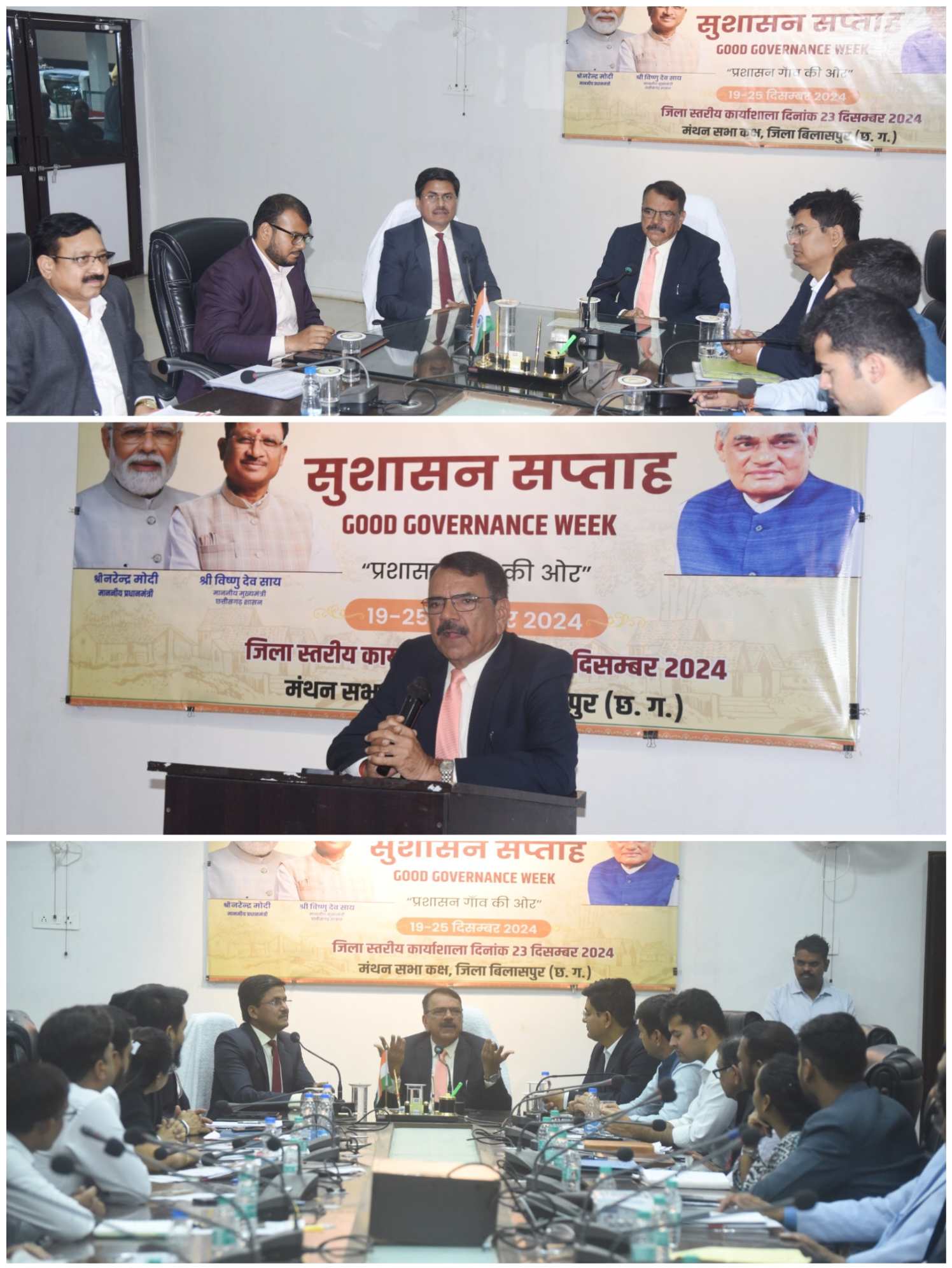 बिलासपुर // सुशासन सप्ताह हमें सुशासन के महत्व की याद दिलाता है। सुशासन से हमारा तात्पर्य है एक ऐसी व्यवस्था जो न्यायापूर्ण, पारदर्शी और जवाबदेह हो। हमें सुशासन को बढ़ावा देने के लिए एकजुट होकर काम करना होगा। सुशासन किसी भी देश की प्रगति के लिए महत्वपूर्ण हैं। उक्त बातें सेवानिवृत्त आईएएस अधिकारी एवं जिले के पूर्व कलेक्टर श्री ठाकुर रामसिंह ने सुशासन सप्ताह पर आयोजित जिला स्तरीय कार्यशाला में बतौर मुख्य अतिथि कही। केन्द्र एवं राज्य सरकार द्वारा 19 दिसंबर से 24 दिसंबर तक सुशासन सप्ताह का आयोजन किया जा रहा है। प्रशासन गांव की ओर थीम पर विभिन्न गतिविधियां आयोजित की जा रही है। इसी कड़ी में आज कार्यशाला का आयोजन जिला कार्यालय के मंथन सभाकक्ष में आयोजित किया गया। उन्होंने इस दौरान अधिकारियों से अपने प्रशासनिक कार्यकाल का लंबा अनुभव साझा किया। अधिकारियों को उपयोगी टिप्स भी दिए। कार्यशाला में कलेक्टर श्री अवनीश शरण ने जिले की महत्वपूर्ण उपलब्धियों से उन्हें अवगत कराया।