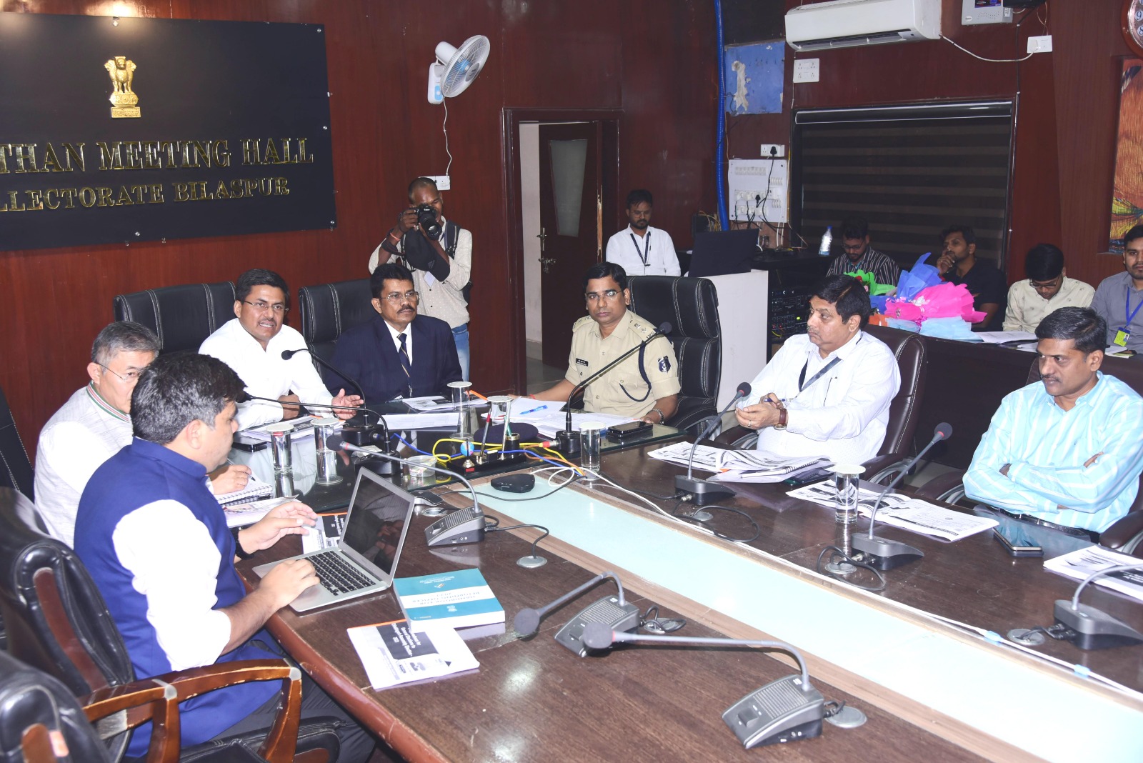 बिलासपुर –/– कलेक्टर एवं जिला निर्वाचन अधिकारी श्री अवनीश शरण ने जिले के लिए नियुक्त प्रेक्षकों की मौजूदगी में आरओ एवं नोडल आधिकारियों की बैठक जिला कार्यालय के मंथन सभाकक्ष में ली। कलेक्टर ने जिले में अब तक चुनाव आयोग के निर्देशानुसार की गई तैयारियों से प्रेक्षकों को अवगत कराया। कलेक्टर ने बताया कि सेक्टर अधिकारी सहित मतदान दलों को पोलिंग बूथ तक ले जाने वाले वाहनों में जीपीएस सिस्टम लगाया जाएगा, जिससे उनके लोकेशन की लगातार मॉनिटरिंग होगी। उन्होंने एफएसटी एवं एसएसटी की टीमों को अब और तेजी गति एवं मुस्तैदी से कार्य करने के निर्देश दिए। बैठक में सामान्य प्रेक्षक श्री नायली इते, श्री कुमार प्रशांत, श्री उदयन मिश्रा, पुलिस प्रेक्षक श्री सतीश कुमार गजभीए एवं व्यय प्रेक्षक श्री अजय कुमार अरोरा, श्री आर भूपति, पुलिस अधीक्षक श्री संतोष कुमार सिंह, सभी आरओ सहित सभी नोडल अधिकारी मौजूद थे।