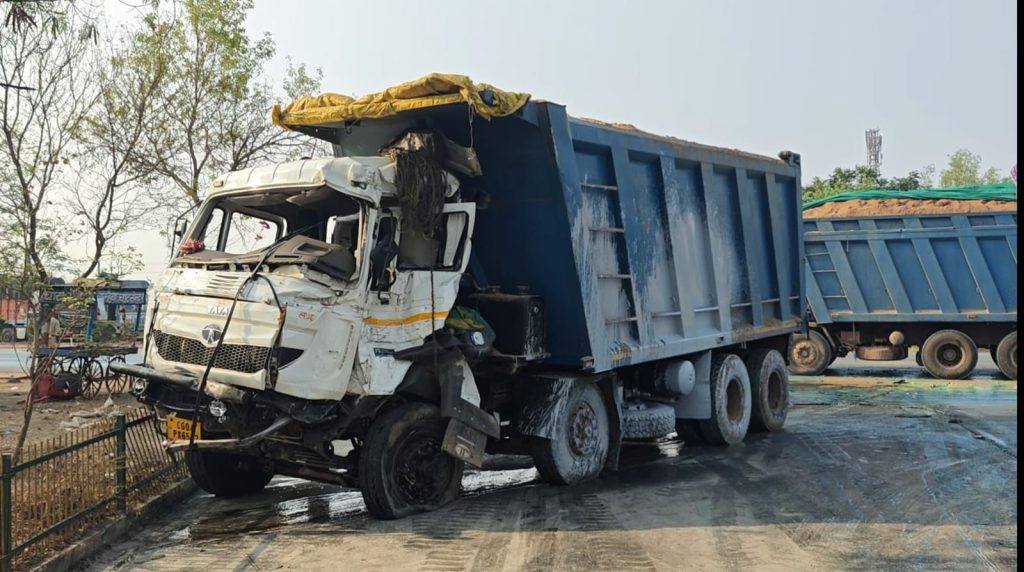 रायपुर: राष्ट्रपति द्रौपदी मुर्मू के आगमन से ठीक पहले रायपुर में एक बड़ा सड़क हादसा हो गया है. उनके तय रूट पर रिंग रोड नंबर 3 पर दो ट्रकों की आमने-सामने भिड़ंत हो गई, जिससे सड़क पर पेंट फैल गया है. हादसा मंदिर हसौद थाना क्षेत्र में हुआ, जहां रेत से भरे डंपर और पेंट लदे ट्रक की जबरदस्त टक्कर हो गई.