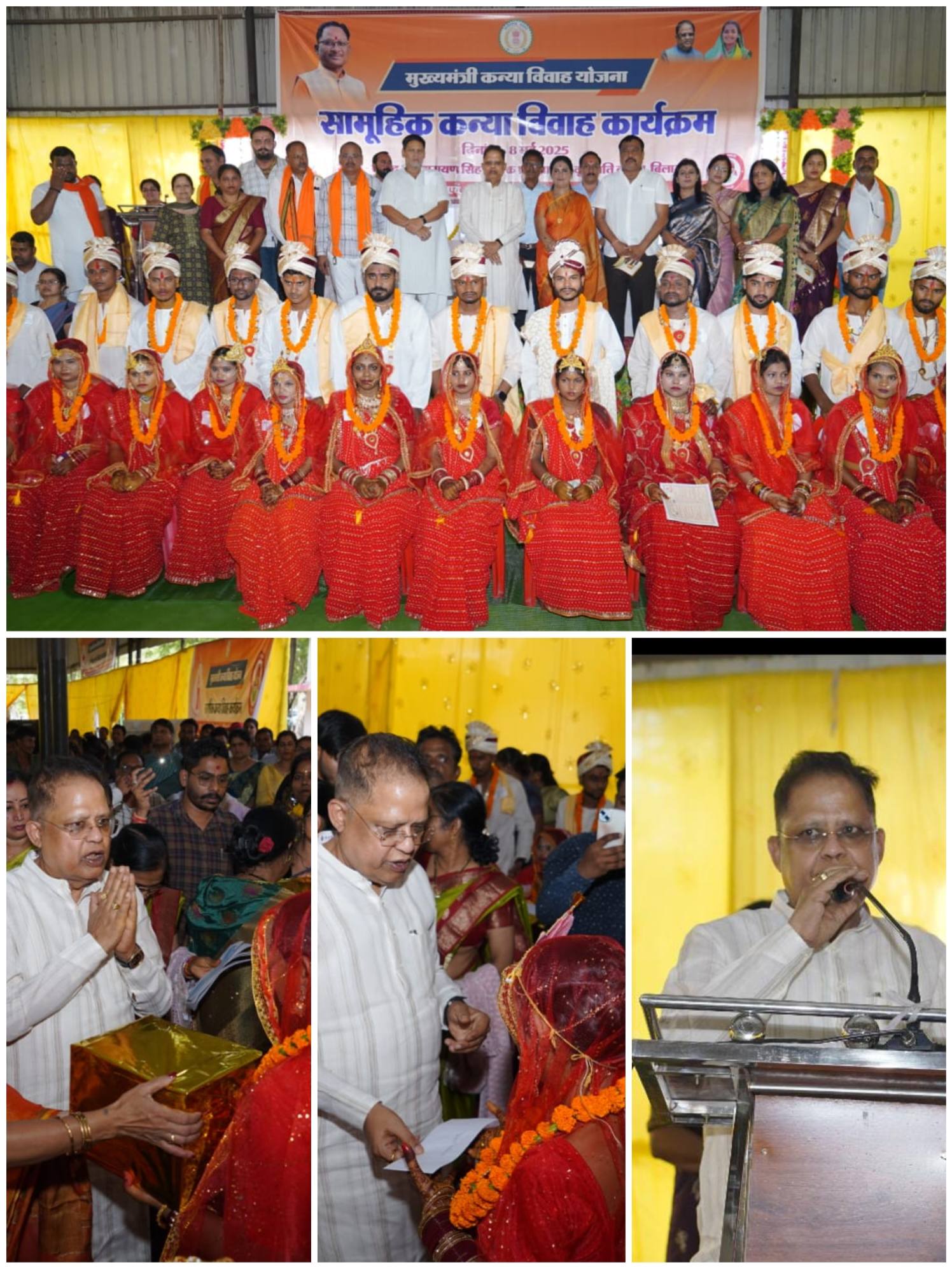 बिलासपुर // सुशासन तिहार के अवसर पर महिला एवं बाल विकास विभाग द्वारा मुख्यमंत्री सामूहिक कन्या विवाह योजना के अंतर्गत 25 निर्धन परिवारों के जोड़ों का सामूहिक विवाह सम्पन्न कराया गया। कार्यक्रम में नगर विधायक श्री अमर अग्रवाल मुख्य अतिथि के रूप में उपस्थित रहे उन्होंने कहा कि प्रदेश सरकार ने निर्धन परिवारों की एक बड़ी चिंता दूर कर दी है।
