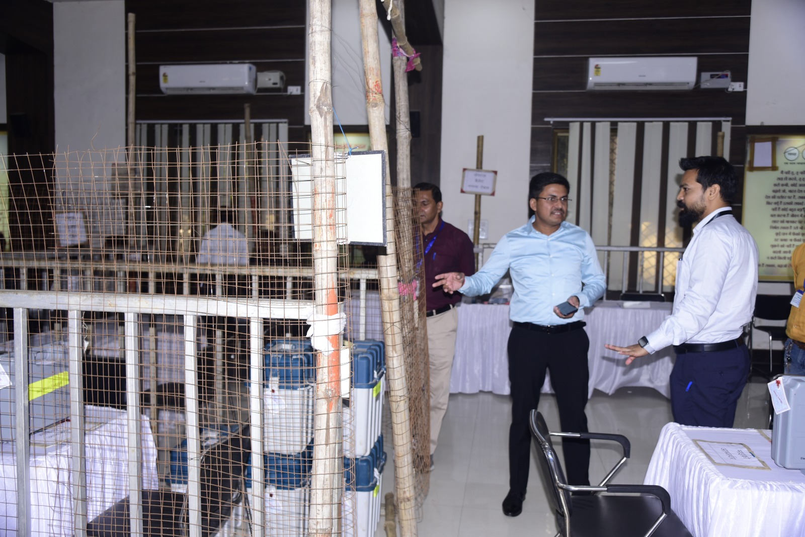 बिलासपुर ·//· विधानसभा चुनाव के लिए मतदान संपन्न होने के बाद 3 दिसम्बर को आयोजित मतगणना की तैयारियां जिला प्रशासन द्वारा जोर-शोर से की जा रही है। मतगणना कार्य के लिए रिटर्निंग अफसरों और उनकी सहयोगी टीम को सिंचाई विभाग की प्राथना सभाकक्ष में आज चुनाव आयोग के मास्टर ट्रेनर्स द्वारा सघन रूप से प्रशिक्षण दिया गया। उन्हें सैद्धांतिक नियम-कायदों के अलावा मतगणना कक्ष का मॉडल बनाकर व्यावहारिक प्रशिक्षण दिया गया। राज्य में निर्वाचन आयोग के राष्ट्रीय स्तर के मास्टर ट्रेनर श्री श्रीकांत वर्मा, श्री उज्ज्वल पोरवाल एवं श्री भूपेन्द्र सिंह द्वारा मतगणना कार्य की संपूर्ण पहलुओं की विस्तार से जानकारी दी गई।