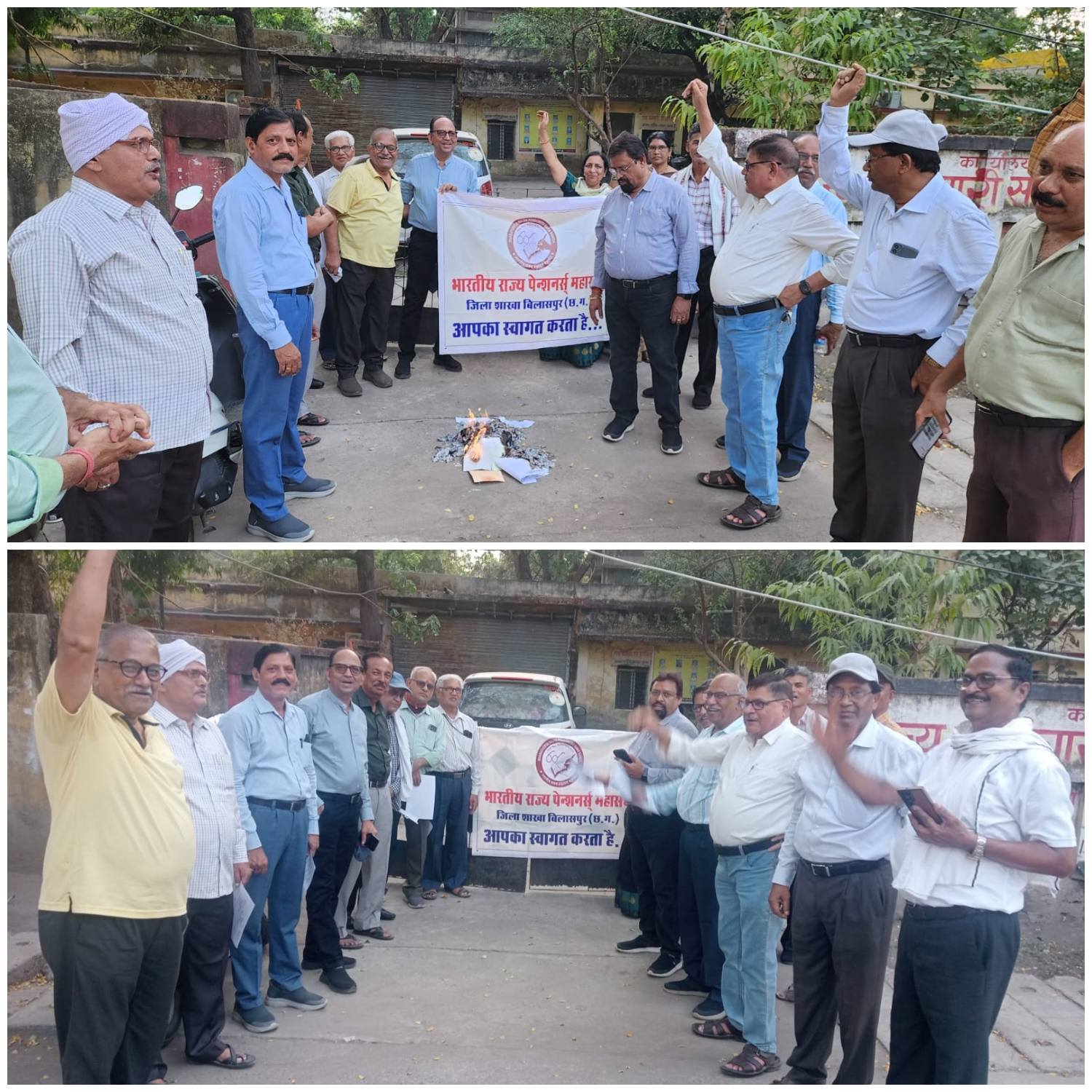 भारतीय राज्य पेंशनर्स महासंघ के द्वारा निरंतर दबाव बनाए जाने के फलस्वरूप अंततः राज्य शासन ने लंबित 3% महंगाई राहत का आदेश जारी किया जो अधूरा है एरियर्स की राशि का कोई उल्लेख नहीं है। इसलिए शासन द्वारा मार्च 2025 की स्थिति से दिए गए महंगाई राहत से हम खुश नहीं हैं । इसी तारतम्य में दिनांक 17-05-2025 को प्रांतीय इकाई के निर्देश पर जिला शाखा बिलासपुर के अध्यक्ष राकेश जैन के नेतृत्व में पेंन्शनर साथियों द्वारा महंगाई राहत आदेश की प्रतियां जलाकर विरोध प्रदर्शन किया। भारतीय राज्य पेंशनर्स महासंघ बिलासपुर द्वारा उक्त विरोध प्रदर्शन नेहरू चौक में किया जिसमे सर्वश्री राजेंद्र कश्यप, दिनेश उपाध्याय, राघवेंद्र तिवारी, कुन्ती राणा, चंद्रिका कुर्रे, एम एल पाल, अरविन्द सोनी,प्रमोद हारित, ओ पी गुप्ता, एस बी गुप्ता, ए के बाजपेई, एस एस कुशवाहा, आर पी यादव, सत्येन्द्र द्विवेदी, पी एस ठाकुर,वाई के तिवारी, एस के वर्मा, एल पी कौशिक, एम के पांडे ए डी दीवान,शिव कुमार साहू आदि पेंशनर्स उपस्थित रहे।