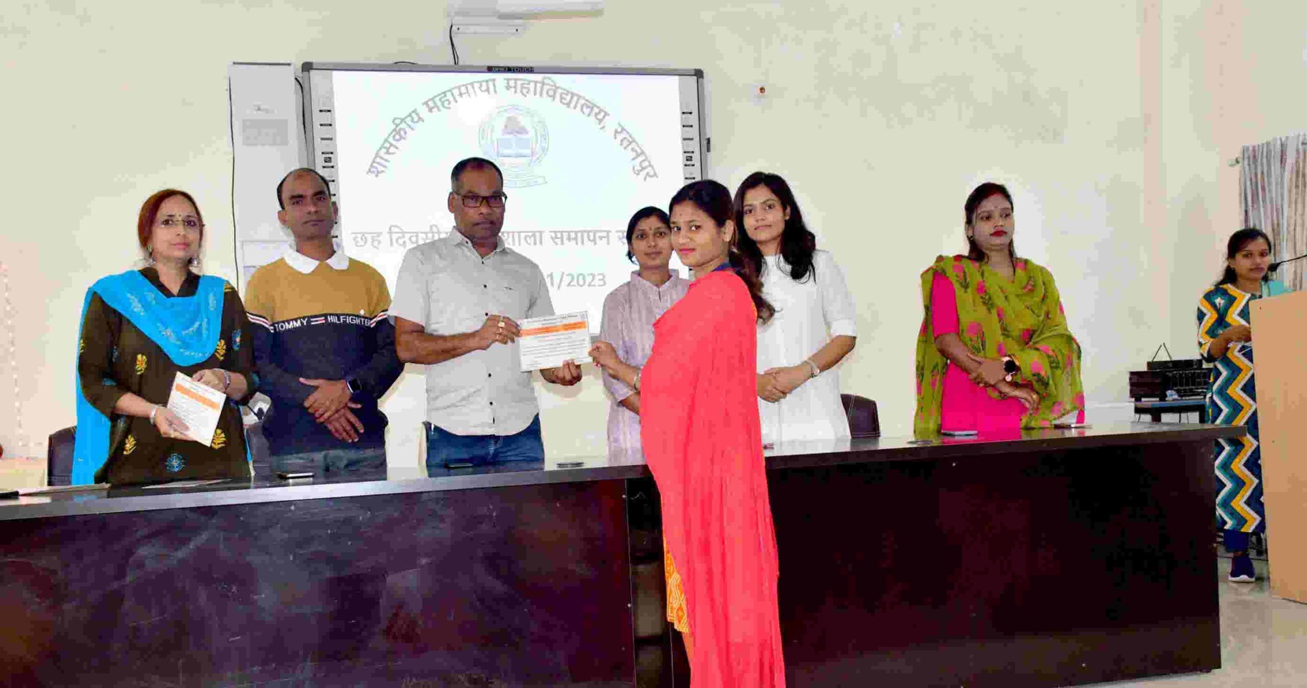 दिनाँक 20.11.2023 से 25.11.2023 तक किया गया। करियर गाइडेंस सेल की संयोजक डॉ जया चावला ने बताया कि महाविद्यालय के स्नातकोत्तर एवं पीजीडीसीए के विद्यार्थियों के लिए इस विशेष छह दिवसीय कार्यशाला का आयोजन किया गया जिसका विषय था – पावरप्वाइंट प्रेजेंटेशन के द्वारा एक प्रभावशील प्रेजेंटेशन कैसे बनाएं (How to make an impressive PowerPoint presentation). इस छः दिवसीय कार्यशाला का शुभारंभ दिनांक 20.11.2023 को मां सरस्वती की आराधना एवं पूजन से किया गया। उद्घाटन सत्र में महाविद्यालय की वरिष्ठ प्राध्यापक डॉ चंदना मित्रा ने विद्यार्थियों को कार्यशाला के औचित्य से परिचित कराया और बताया कि आज के समय में एक अच्छी प्रस्तुति हमारे किसी भी काम को सफल करने में कितनी सहायक होती है। उन्होंने कार्यशाला के आयोजकों को इस प्रकार के समसामयिक एवं सारगर्भित विषय पर कार्यशाला का आयोजन करने पर बधाई एवं शुभकामनाएं दीं। उद्घाटन सत्र में महाविद्यालय के समस्त स्नातकोत्तर एवं पीजीडीसीए विभाग के प्राध्यापक एवं विद्यार्थी उपस्थित रहे। कार्यशाला में विद्यार्थियो को व्यक्तिगत प्रशिक्षण प्रदान करने हेतु विषय विशेषज्ञों द्वारा छः दिवस में विषय को बारीकी से समझाया गया। प्रथम दिवस दिनांक 20.11.2023 को कु प्रिंसी तिवारी द्वारा पीपीटी प्रस्तुति के मूल तत्वों को विस्तार से समझाया गया। द्वितीय दिवस दिनांक 21.11.2023 को कुमारी प्रिंसी तिवारी एवं कुमारी रूपाली साव द्वारा पीटी में स्लाइड प्रबंधन पर विद्यार्थियों को व्यवहारिक प्रशिक्षण प्रदान किया गया। कार्यशाला के तृतीय दिवस दिनांक 22.11.2023 को कुमारी हिमांशी गुप्ता एवं श्री सुरेंद्र भार्गव द्वारा एनीमेशन एंड डिजाइन पर प्रशिक्षण प्रदान किया गया। कार्यशाला के चतुर्थ दिवस दिनांक 23.11.2023 को कुमारी रूपाली साव एवं श्री सुरेंद्र भार्गव द्वारा फ़ाइल को सहेजना और पुनर्प्राप्त करने की प्रक्रिया सिखाई गई। कार्यशाला के पांचवें दिवस दिनांक 24.11.2023 को कुमारी हिमांशी गुप्ता एवं श्री प्रकाश सोनी द्वारा फाइल को देखना तथा पीपीटी स्लाइड शो के द्वारा अपनी प्रस्तुति करना सिखाया गया। कार्यशाला का मूल उद्देश्य विद्यार्थियो को पीपीटी स्लाइड्स बनाकर प्रभावशाली तरीके से उसकी प्रस्तुति करना सिखाना रहा। इसी तारतम्य में सभी विद्यार्थियो को पूरे प्रशिक्षण के दौरान अपने द्वारा एक पीपीटी प्रस्तुति बनाने के लिए प्रेरित किया गया। इन सभी विद्यार्थियो द्वारा बनाई गई पीपीटी प्रेजेंटेशन को कार्यशाला के छठवें दिवस दिनांक 25.11.2023 को विद्यार्थियो द्वारा महाविद्यालय के प्राचार्य, समस्त प्राध्यापकों एवं विद्यार्थियो के समक्ष प्रस्तुत किया गया । सभी प्रशिक्षण प्राप्त विद्यार्थियो का उत्साह देखते ही बनता था, सभी ने बढ़ चढ़कर अपनी कलात्म