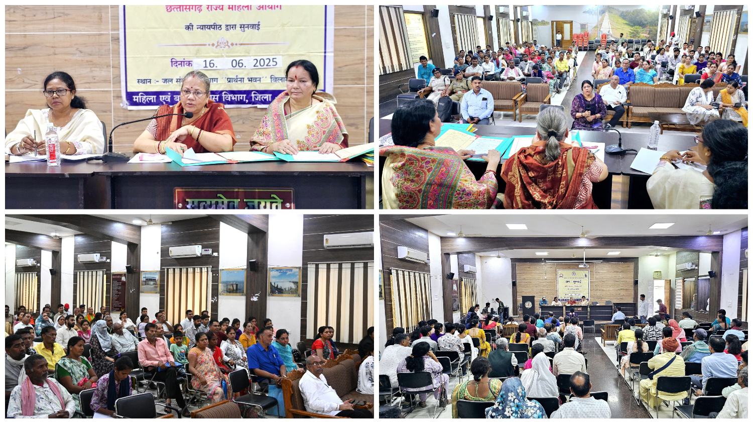 बिलासपुर :— छत्तीसगढ़ राज्य महिला आयोग की अध्यक्ष डॉ0 किरणमयी नायक, सचिव किरण कुजुर व सदस्य सरला कोसरिया ने प्रार्थना सभा कक्ष जल संसाधन विभाग में महिला उत्पीड़न से संबंधित प्रस्तुत 31 प्रकरणों पर जनसुनवाई की। छत्तीसगढ़ राज्य महिला आयोग की अध्यक्ष डॉ0 किरणमयी नायक की अध्यक्षता में आज प्रदेश स्तर पर 325 व बिलासपुर जिले में 18वीं सुनवाई हुई।