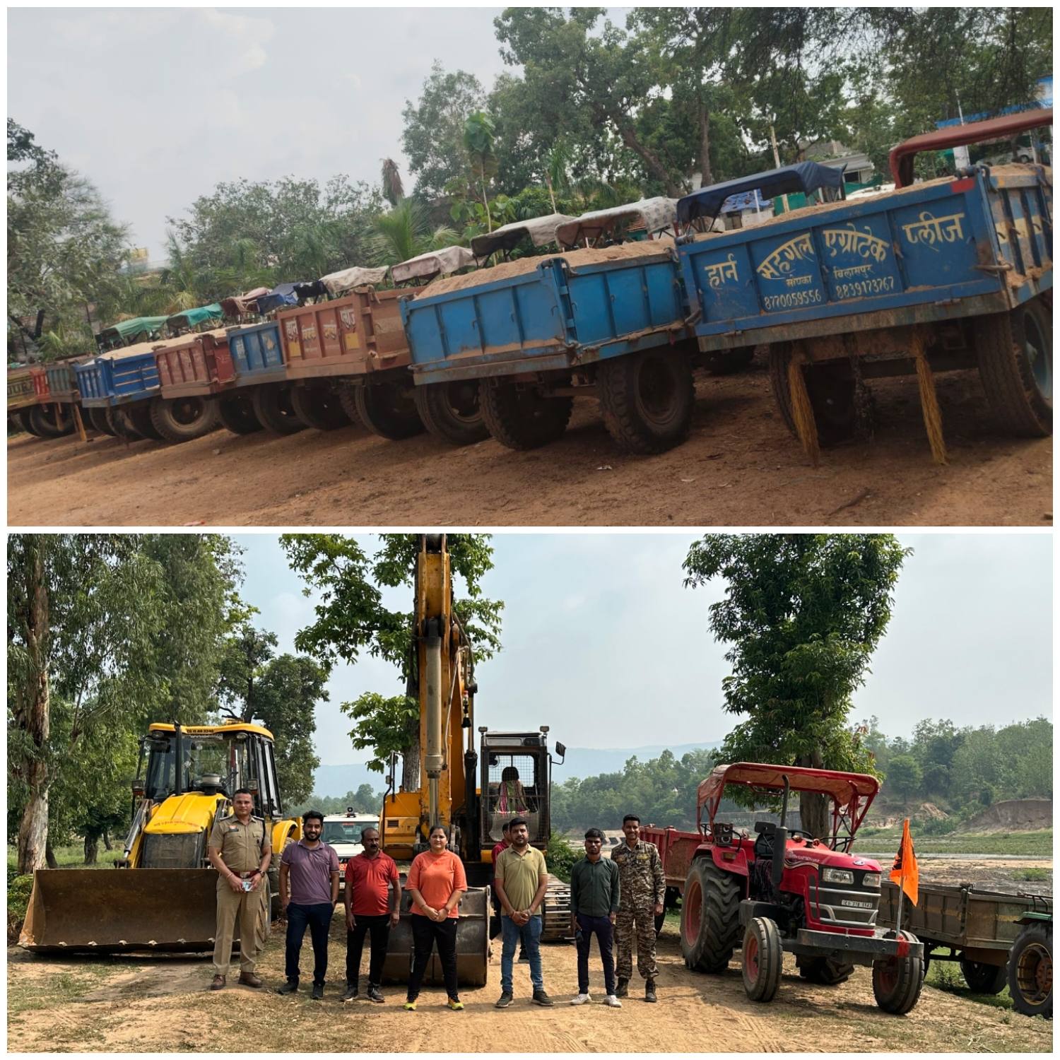 बिलासपुर // कलेक्टर संजय अग्रवाल एंव एसएसपी रजनेश सिंह के संयुक्त निर्देशानुसार जिला बिलासपुर में खनिज, राजस्व एंव पुलिस विभाग द्वारा खनिजों के अवैध उत्खनन, परिवहन एंव भण्डारण पर विगत 16 जून 2025 को संयुक्त कार्रवाई की गई थी। संयुक्त कार्रवाई मे खनिज रेत के अवैध उत्खनन एंव परिवहन करते वाहनों को पकड़ा गया था l उक्त वाहनों के विरुद्ध 10 पुलिस थानों चौकियों मे जप्त किये गए 56 वाहनों के चालकों व मालिकों के विरुद्ध एफ आई आर दर्ज किया गया है। जिसमे थाना सरकंडा मे 2 हाइवा वाहन, थाना सिविल लाइन मे 3 ट्रेक्टरमय ट्राली, थाना चकरभाटा मे 4 ट्रेक्टर मय ट्राली, जूनापारा चौकी मे 2 हाइवा, हिर्री थाना 02 ट्रेक्टरमय ट्राली, कोनी थाना मे 6 ट्रेक्टरमय ट्राली, थाना पचपेड़ी मे 7 हाइवा व 3 ट्रेक्टरमय ट्राली, थाना मस्तूरी मे 3 ट्रेक्टरमय ट्राली, थाना कोटा मे 11 ट्रेक्टरमय ट्राली एंव चौकी बेलगहना मे 1 पोकलेन मशीन 1 जे सी बी मशीन और 8 ट्रेक्टर मय ट्राली 1 ट्राली के चालकों/मालिकों वाहन मालिकों के विरुद्ध एफ आई आर दर्ज किया गया है।उक्त कृत्य मे संलिप्त वाहन चालकों/मालिकों के विरुद्ध खान एंव खनिज (विकास एंव विनियमन)अधिनियम 1957 की धारा 4(1),4(1क), 21 एंव भारतीय न्याय संहिता 2023 की धारायें 303(2),3(5) के तहत एफ. आई.आर. दर्ज किया गया है। खनिजों के अवैध उत्खनन,परिवहन,भण्डारण पर खनिज, राजस्व एंव पुलिस विभाग द्वारा कार्रवाई जारी है।
