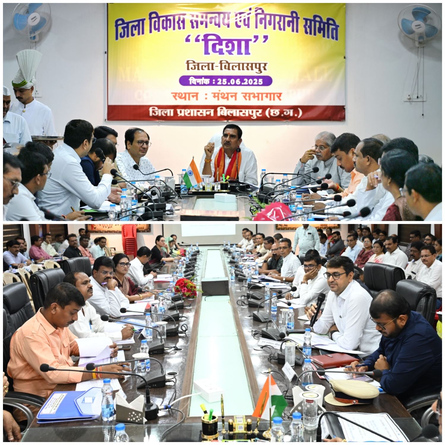 बिलासपुर // जिला विकास समन्वय एवं निगरानी समिति (दिशा) की बैठक आज यहां जिला कार्यालय के मंथन सभाकक्ष में केन्द्रीय आवासन एवं शहरी विकास राज्य मंत्री और सांसद श्री तोखन साहू की अध्यक्षता में संपन्न हुई। बैठक में फ्लैगशिप योजनाओं में प्रगति की गहन समीक्षा की गई। केन्द्रीय राज्य मंत्री श्री तोखन साहू ने कहा कि धरातल पर काम दिखना चाहिए। लोगों की बेहतरी के लिए केन्द्र और राज्य सरकार द्वारा कल्याणकारी योजनाएं चलाई जा रही हैं इसमें लापरवाही कतई बर्दाश्त नहीं की जाएगी। अभियान चलाकर राजस्व मामलों का निपटारा किया जाए। ग्रामीणों और किसानों को किसी भी स्थिति में भटकना ना पड़े। बैठक में विधायक सर्व श्री धरम लाल कौशिक, धरमजीत सिंह, सुशांत शुक्ला, अटल श्रीवास्तव, दिलीप लहरिया, महापौर श्रीमती पूजा विधानी, जिला पंचायत अध्यक्ष श्री राजेश सूर्यवंशी सहित जनपद एवं नगर पंचायत के अध्यक्ष एवं अन्य जनप्रतिनिधि, कलेक्टर श्री संजय अग्रवाल, एसएसपी श्री रजनेश सिंह, नगर निगम कमिश्नर श्री अमित कुमार, सीईओ जिला पंचायत श्री संदीप अग्रवाल सहित अन्य अधिकारी-कर्मचारीगण मौजूद थे।