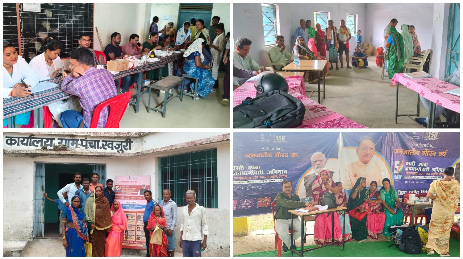 बिलासपुर :— जनजातीय समाज के सर्वांगीण विकास और उन्हें बुनियादी सुविधाओं से जोड़ने के उद्देश्य से भारत सरकार द्वारा शुरू किए गए धरती आबा जनजातीय ग्राम उत्कर्ष अभियान के तहत जिले में 15 जून से 30 जून तक विशेष ग्राम स्तरीय शिविरों का आयोजन किया जा रहा है। अभियान के तहत जिले के 102 ग्राम पंचायतों को चिन्हांकित किया गया है, जहाँ ब्लॉक स्तर पर संयुक्त विभागीय प्रयास से ग्रामीणों को सरकारी योजनाओं की जानकारी और सुविधाएं दी जा रही हैं। इसी क्रम में 25 जून को जिले के चार विकासखंडो बिल्हा, मस्तूरी, तखतपुर व कोटा में शिविर का आयोजन किया गया।