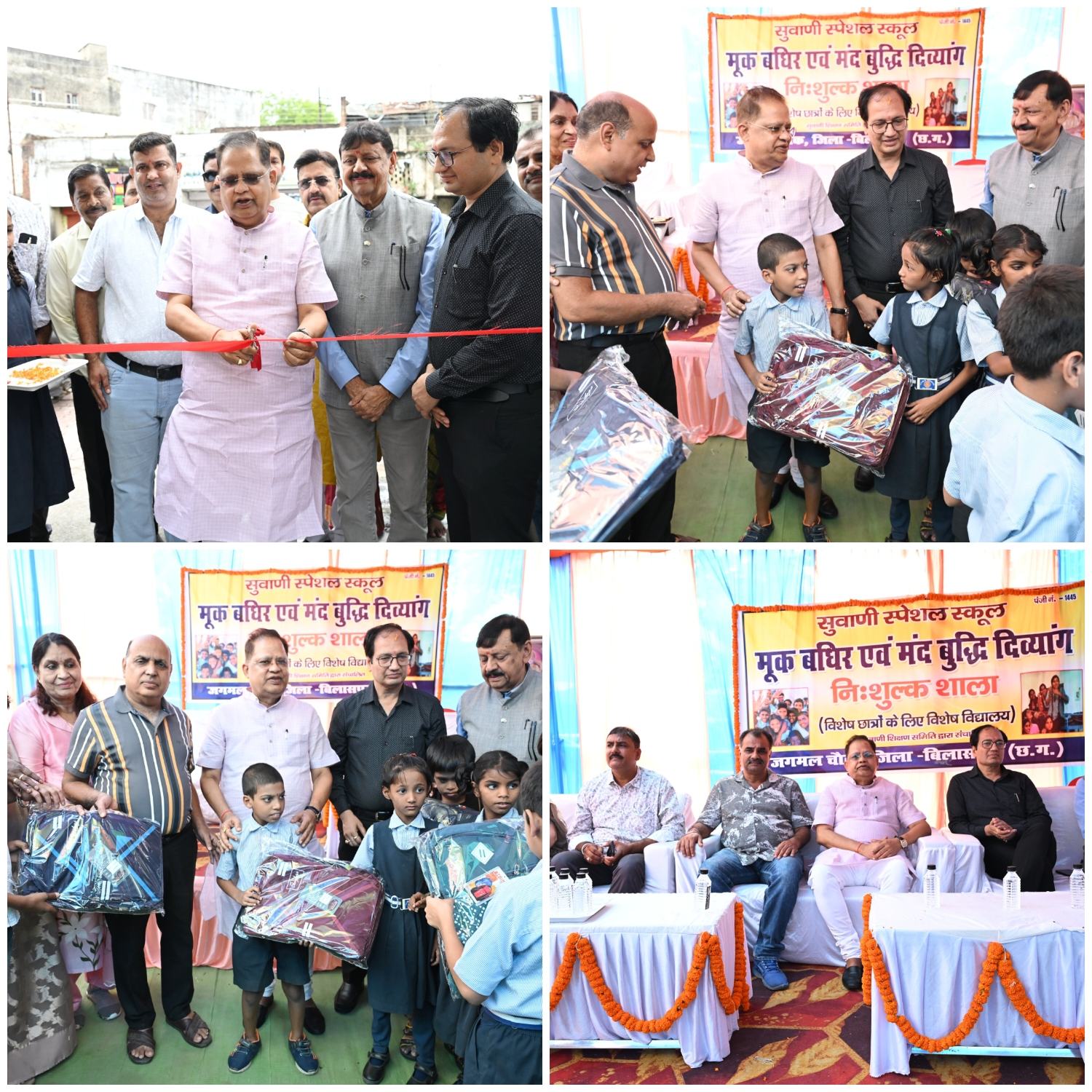 बिलासपुर :— विधायक अमर अग्रवाल ने शहर के जगमल चौक में मूक बधिर एवं मंदबुद्धि दिव्यांग स्कूल का शुभारंभ किया। लगभग डेढ़ सौ बच्चे इस विशेष स्कूल में कक्षा पहली से आठवीं तक पढ़ाई कर रहे हैं। मुख्य अतिथि ने सभी बच्चों को संस्था की ओर से स्कूल बैग वितरित किये। समाजसेवी संस्था सुवाणी शिक्षण समिति द्वारा इस विशेष स्कूल का संचालन एवं बच्चों को निःशुल्क शिक्षा प्रदान की जायेगी। कलेक्टर संजय अग्रवाल एवं संयुक्त संचालक समाज कल्याण विभाग श्रीमती श्रद्धा मैथ्यू भी इस मौके पर उपस्थित थी।