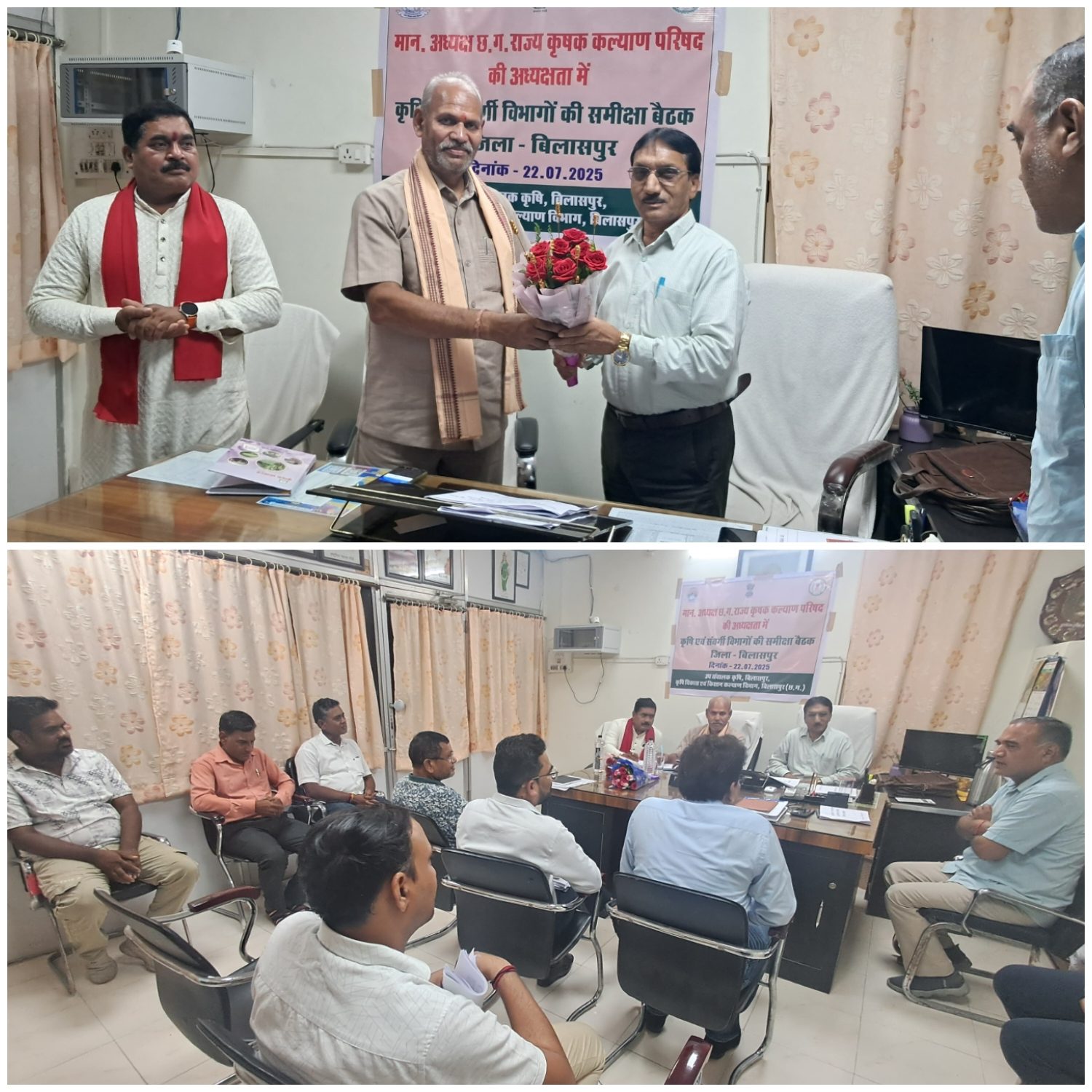 बिलासपुर // छत्तीसगढ़ कृषक कल्याण परिषद के अध्यक्ष सुरेश चंद्रवंशी ने उप संचालक कृषि कार्यालय में अधिकारियों की बैठक लेकर कृषि एवं इससे जुड़े विभागों के काम काज की प्रगति की समीक्षा की। उन्होंने कहा कि किसानों और कृषि गतिविधियों का विकास राज्य सरकार की प्राथमिकता सूची में सर्वोपरि है। यह तभी संभव है जब शासन द्वारा किसानों के लिए बनाई गई योजनाएं और सुविधाओं का लाभ उन्हें सुगमता से मिल सके। उन्होंने बैठक में सस्ते विकल्प के रूप में नैनो यूरिया और नैनो डीएपी के इस्तेमाल को बढ़ावा देने के लिए किसानों के बीच इनका व्यापक प्रचार प्रसार करने के निर्देश दिए।