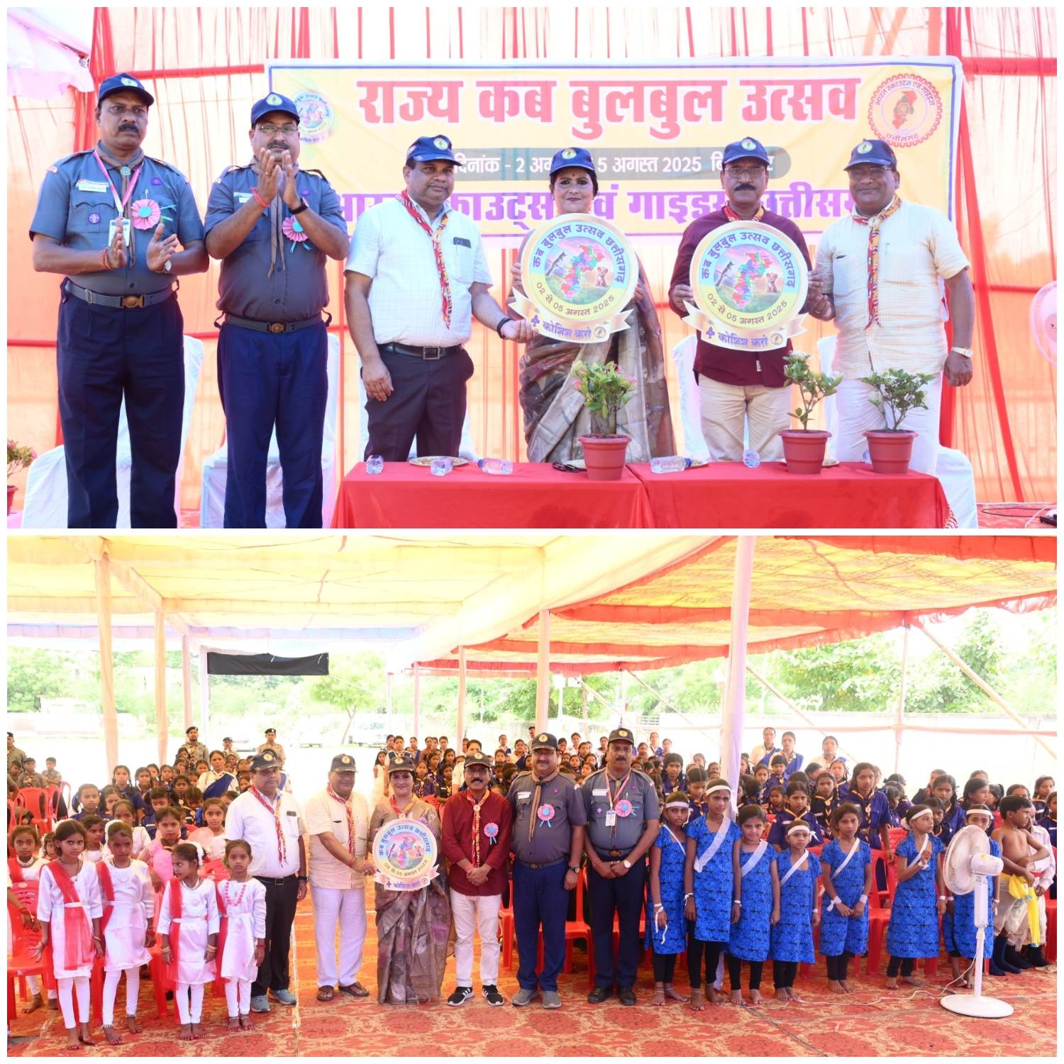 बिलासपुर :— भारत स्काउट्स एवं गाइड्स, छत्तीसगढ़ राज्य के तत्वावधान में आयोजित राज्य स्तरीय कब-बुलबुल उत्सव एवं हिरक पंख चतुर्थ चरण जाँच शिविर का भव्य शुभारंभ 03 अगस्त 2025 को साइंस कॉलेज मैदान, सरकण्डा, बिलासपुर में उत्साहपूर्वक सम्पन्न हुआ। यह चार दिवसीय शिविर 02 अगस्त से 05 अगस्त 2025 तक बिलासपुर में आयोजित किया जा रहा है।
