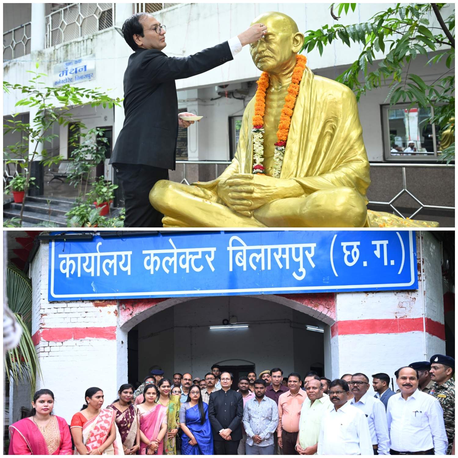 बिलासपुर :— कलेक्टोरेट बिलासपुर एवं नए तथा पुराने कम्पोजिट बिल्डिंग में स्वतंत्रता दिवस 15 अगस्त पर कलेक्टर श्री संजय अग्रवाल नेे ध्वजारोहण किया। इस अवसर पर अधिकारियों एवं कर्मचारियों द्वारा राष्ट्रगान गाया गया। इसके पश्चात् कलेक्टोरेट परिसर में स्थापित राष्ट्रपिता महात्मा गांधी के मूर्ति पर कलेक्टर ने माल्यार्पण किया। इस अवसर पर प्रशासनिक अधिकारी और जिला कार्यालय एवं दोनों कम्पोजिट बिल्डिंग स्थित विभिन्न कार्यालयों के अधिकारी, कर्मचारी उपस्थित थे।