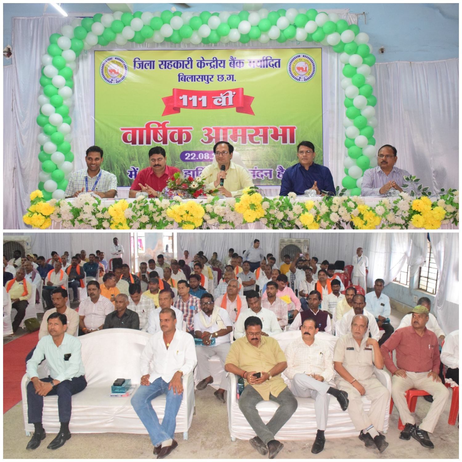 बिलासपुर :— जिला सहकारी केंद्रीय बैंक बिलासपुर की 111वीं आम सभा का आयोजन बैंक परिसर में किया गया। इस अवसर पर बैंक के प्राधिकृत अधिकारी एवं कलेक्टर संजय अग्रवाल मुख्य अतिथि के रूप में उपस्थित रहे। प्राधिकृत अधिकारी ने अपने संबोधन में कहा कि बैंक वर्ष 1915 से संचालित है, आज लगभग 111 साल हो गए। बैंक उत्तरोत्तर वृद्धि कर रहा है और कई शाखाओं का विस्तार हो रहा है। बैंक अंतर्गत 58 शाखाएं और 430 सेवा सहकारी समितियां संचालित है। बैंक की कुल अंश पूंजी 5.91 करोड रुपए की वृद्धि होकर 125.43 करोड़ रुपए हो गई है।