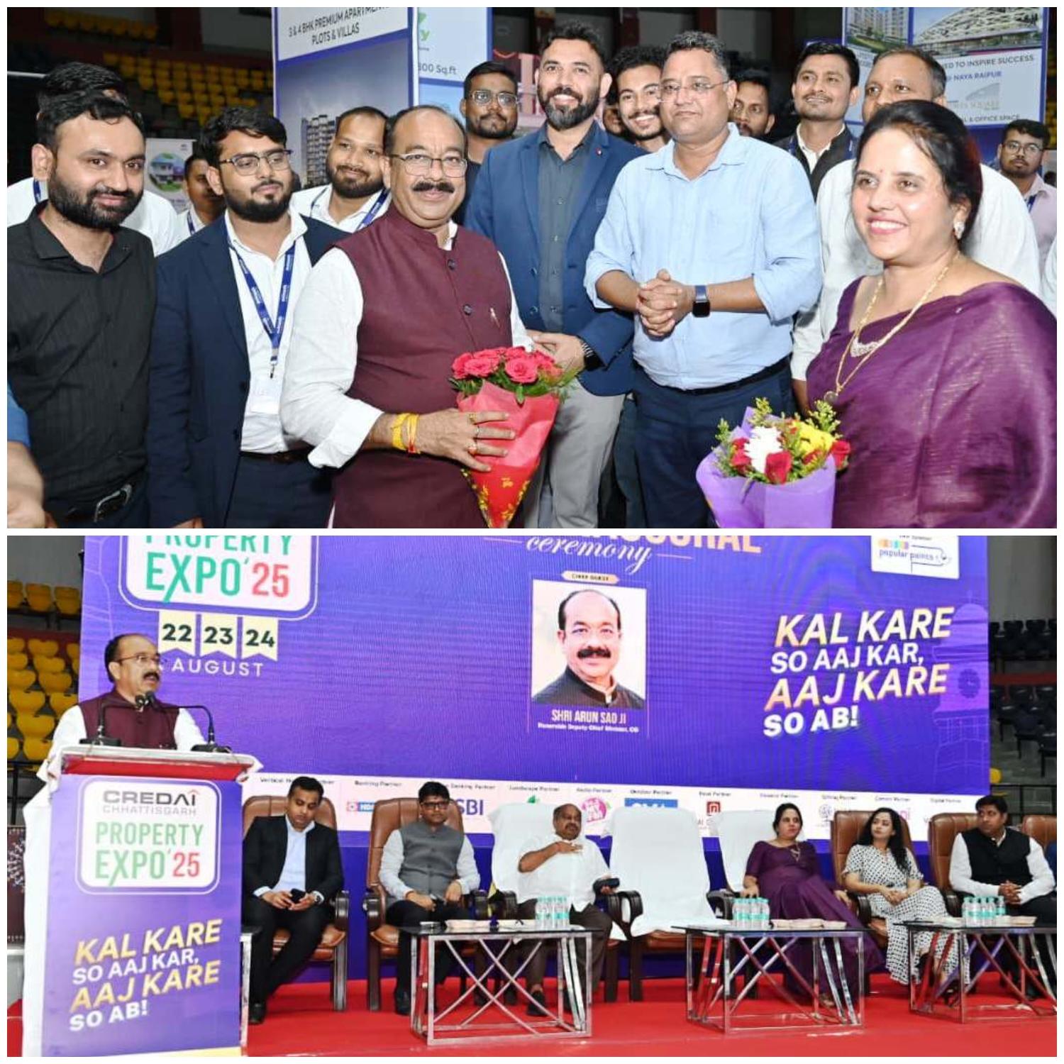 बिलासपुर :— उप मुख्यमंत्री अरुण साव ने राजधानी रायपुर के सरदार बलबीर सिंह जुनेजा इंडोर स्टेडियम में प्रापर्टी एक्सपो का शुभारंभ किया। उन्होंने एक्सपो में विभिन्न डेवलपर्स द्वारा लगाए गए स्टॉल्स का भ्रमण भी किया। क्रेडाई छत्तीसगढ़ द्वारा 22 अगस्त से 24 अगस्त तक इस तीन दिवसीय एक्सपो का आयोजन किया गया है। इसमें 40 डेवलपर्स 300 से अधिक प्रोजेक्ट्स के साथ हिस्सेदारी कर रहे हैं। विधायक श्री पुरंदर मिश्रा और महापौर श्रीमती मीनल चौबे भी शुभारंभ कार्यक्रम में शामिल हुईं।
