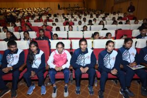 अंतरराष्ट्रीय बैडमिंटन खिलाड़ी श्री श्रेयांश जायसवाल ने खिलाड़ियों से चर्चा के दौरान कहा कि खेलों में अनुशासन और निरंतरता बहुत जरूरी है। उच्च स्तर पर खेलने और जीतने के लिए शारीरिक फिटनेस के साथ ही मानसिक मजबूती आवश्यक है। इन्जरी से उबरने में सही डाइट की बड़ी भूमिका है। अंतरराष्ट्रीय फुटबॉलर सुश्री किरण पिस्दा ने खिलाड़ियों को प्रेरित करते हुए कहा कि अपनी क्षमताओं और कौशल पर भरोसा रखें। सपने सच होते हैं, सपने जरूर देखें। उन्होंने खिलाड़ियों से अपील की कि वे कड़ी मेहनत करें। मेहनत ही आपको उस जगह पहुंचा सकता है जहां आप पहुंचना चाहते हैं।