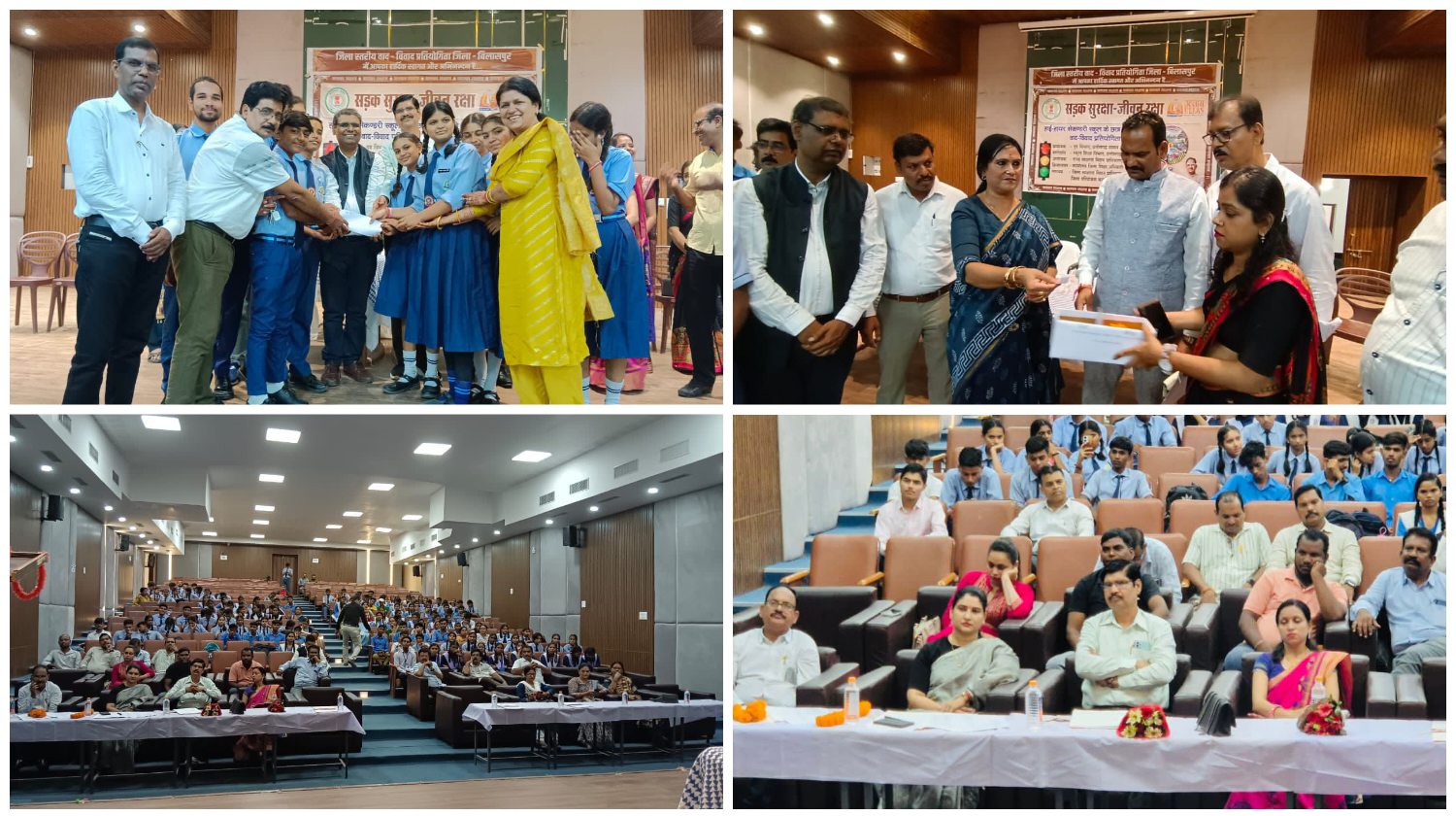 बिलासपुर // “सड़क सुरक्षा जीवन रक्षा ” विषय पर जिला स्तरीय वाद-विवाद प्रतियोगिता का आयोजन शनिचरी बाजार स्थित पं. देवकीनंदन दीक्षित सभाभवन में किया गया। कार्यक्रम का शुभारंभ बिलासपुर की महापौर श्रीमती पूजा विधानी एवं जिला पंचायत अध्यक्ष श्री राजेश सूर्यवंशी ने दीप प्रज्वलित कर किया। इस अवसर पर जनप्रतिनिधियों एवं शिक्षा विभाग के वरिष्ठ अधिकारी उपस्थित रहे।प्रतियोगिता का आयोजन छत्तीसगढ़ शासन, स्कूल शिक्षा विभाग के निर्देशानुसार सड़क दुर्घटनाओं में कमी लाने और आमजन को यातायात नियमों के प्रति जागरूक करने हेतु किया गया।