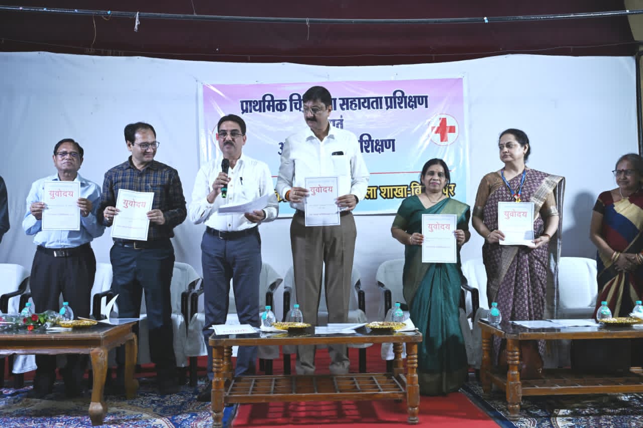 बिलासपुर :— भारतीय रेडक्रॉस सोसायटी द्वारा आयोजित प्राथमिक सहायता प्रशिक्षण एवं आपदा प्रबंधन प्रशिक्षण का समापन समारोह संभागायुक्त श्री सुनील जैन के मुख्य आतिथ्य में सम्पन्न हुआ। आईजी श्री संजीव शुक्ला और कलेक्टर एवं भारतीय रेडक्रॉस सोसायटी के अध्यक्ष श्री संजय अग्रवाल भी मौजूद थे। कार्यक्रम के द्वितीय दिवस के प्रथम सत्र में राज्य स्तरीय मास्टर ट्रेनर श्री बालमुकुंद दुबे द्वारा प्रशिक्षार्थियों को प्राथमिक चिकित्सा, सांप के काटने से तुरंत बचाव, बैंडेजिंग आदि का प्रशिक्षण दिया गया। सिम्स चिकित्सालय की डॉ. मधुमिता मूर्ति द्वारा सीपीआर का प्रशिक्षण दिया गया। साथ ही अतिरिक्त पुलिस अधीक्षक ग्रामीण श्रीमती अर्चना झा ने जिले में नशा मुक्ति के लिए चलाए जा रहे चेतना अभियान के बारे में जानकारी दी। अतिरिक्त पुलिस अधीक्षक यातायात श्री राम गोपाल करियारे ने यातायात के नियमों सहित यातायात से जुड़ी अन्य जानकारी साझा की।