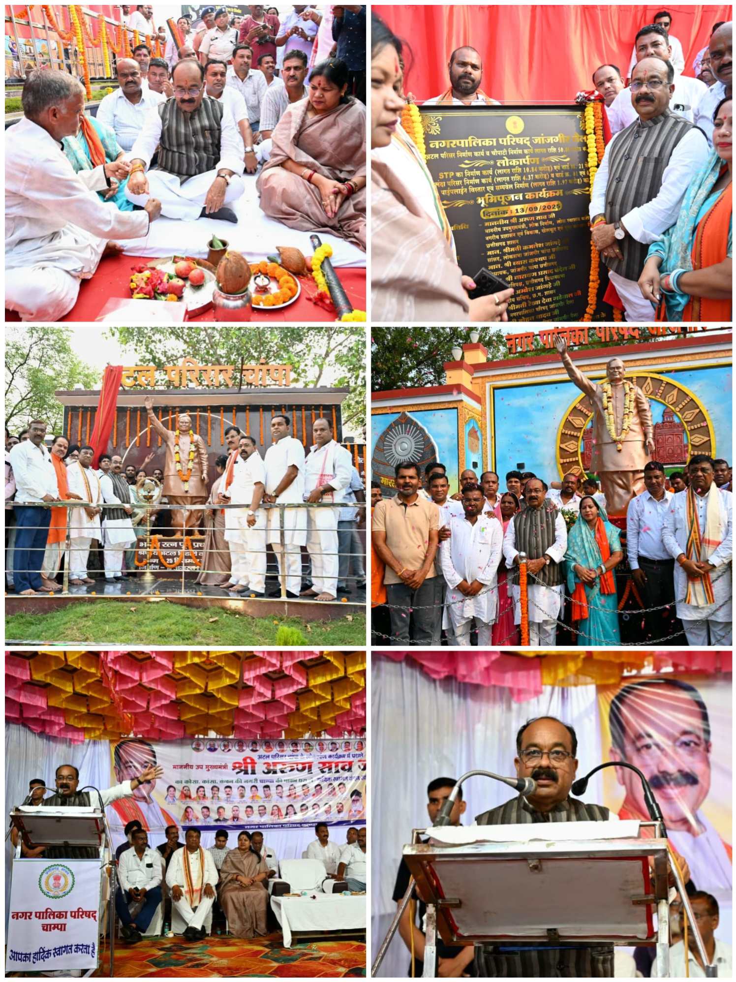 उप मुख्यमंत्री श्री साव ने जिला मुख्यालय जांजगीर में 4 करोड़ 37 लाख रुपए की लागत से जांजगीर के वार्ड क्रमांक 21 में नालंदा परिसर (सेंट्रल लाइब्रेरी-सह-रीडिंग जोन), 10.84 करोड़ रुपए की लागत से एसटीपी निर्माण कार्य एवं 1.97 करोड़ रुपए की लागत से वार्ड क्रमांक 1 एवं 2 में पाइपलाइन विस्तार एवं सम्पवेल निर्माण कार्य का भूमिपूजन किया। उन्होंने इनके साथ ही 30 लाख रुपए की लागत से अटल परिसर और 20 लाख रुपए की लागत से नवनिर्मित चौपाटी का लोकार्पण भी किया।