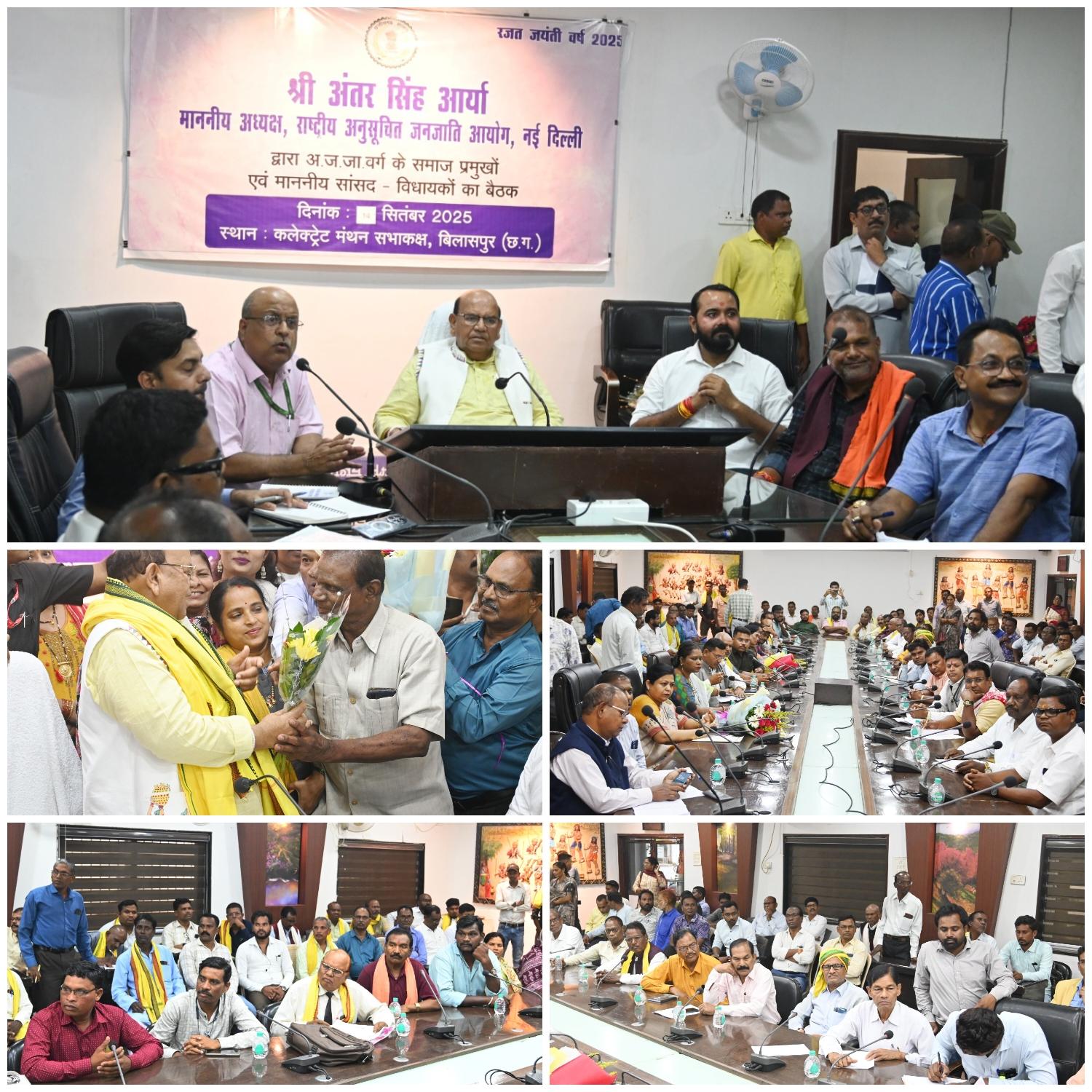 बिलासपुर // केन्द्रीय अनुसूचित जनजाति आयोग के अध्यक्ष अंतर सिंह आर्या ने यहां जिला कार्यालय के मंथन सभाकक्ष में आदिवासी समाज प्रमुखों की बैठक ली। लगभग दो घण्टे तक चली बैठक में उन्होंने इत्मीनान से उनकी एक-एक समस्याएं सुनी और इस संबंध में ज्ञापन भी लिए। श्री आर्या ने कहा कि बैठक में आज आदिवासी समाजों की ओर से महत्वपूर्ण सुझाव मिले हैं। ये सभी कानूनी एवं विभिन्न संवैधानिक मुद्दों से जुड़े हुए हैं। इन सभी को राष्ट्रपति और राज्यपाल के ध्यान में लाकर उनका सकारात्मक समाधान किया जायेगा। आयोग के वरिष्ठ अधिकारी एवं विशेषज्ञ भी इस दौरान उपस्थित थे।