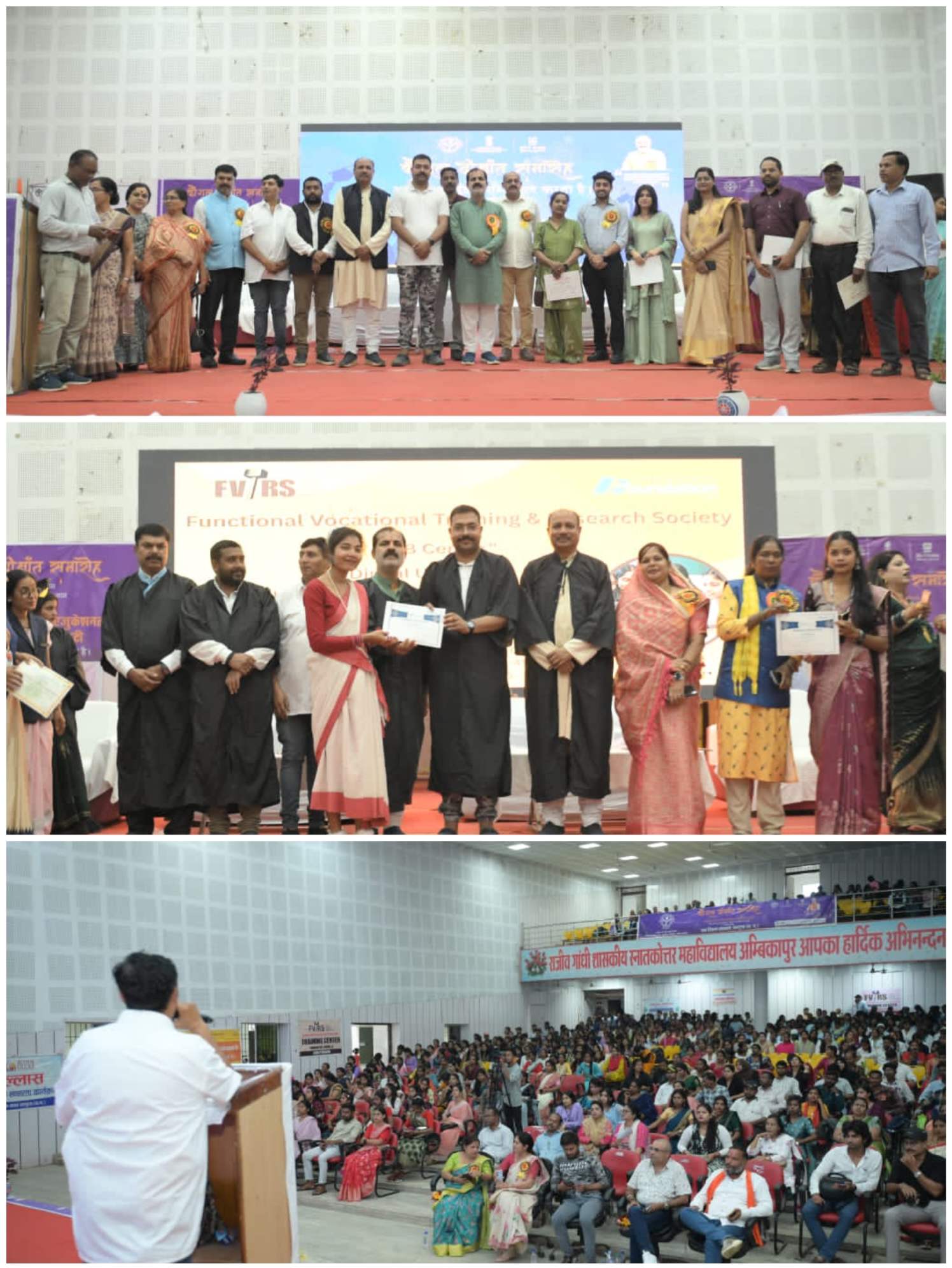 अंबिकापुर :— अंबिकापुर के पी जी कॉलेज ऑडिटोरियम मे कौशल दीक्षान्त समारोह का आयोजन किया गया। एफ वी टी आर एस अंबिकापुर एवं जन शिक्षण संस्थान के संयुक्त तत्वावधान में आयोजित कार्यक्रम में मुख्य अतिथि के रूप में श्री विश्व विजय सिंह तोमर, माननीय अध्यक्ष राज्य युवा आयोग छत्तीसगढ़ की उपस्थिति रहीं। साथ ही श्री हरमिंदर सिंह टिन्नी, माननीय सभापति नगर पालिक निगम अंबिकापुर छत्तीसगढ़ की गरिमामय उपस्थिति रहीं। श्री फेलिक्स डिसूज़ा एफ वी टी आर एस बंगलुरु , श्री जीतेन्द्र सोनी, पार्षद नगर निगम अंबिकापुर, श्री आलोक दुबे, वरिष्ठ पार्षद, श्री दीपेंद्र यादव सेंट्रल बैंक ऑफ इंडिया अंबिकापुर, अनीता रवींद्र गुप्ता जी एमआईएस मेंबर, श्रीमती श्वेता गुप्ता एम आई एस मेंबर, श्री ललित पटेल असिस्टैंट डायरेक्टर जिला कौशल विभाग सरगुजा डायरेक्टर एवं जन शिक्षण संस्थान सरगुजा से निदेशक एम सिद्दीकी,