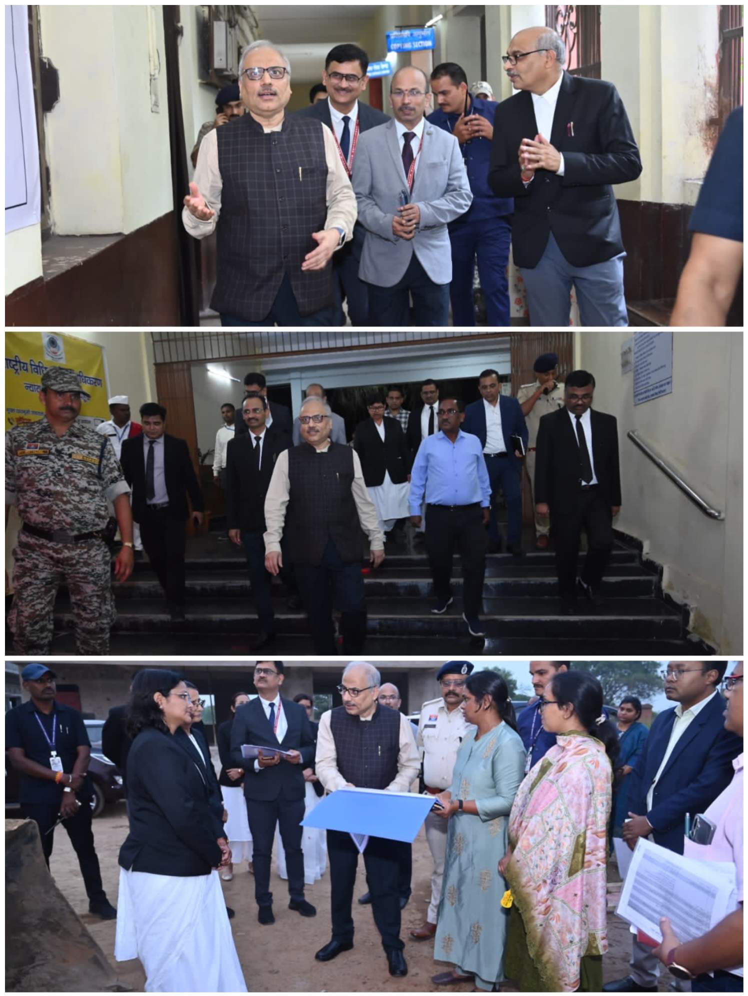 अंत में माननीय मुख्य न्यायाधीश महोदय द्वारा जिला न्यायालय जांजगीर-चांपा का निरीक्षण किया गया। निरीक्षण के दौरान न्यायिक अधिकारीगण व प्रशासनिक अधिकारी उपस्थित रहे। न्यायिक अधिकारीगणों को न्यायालयीन प्रकरणों के निराकरण हेतु आवश्यक दिशा-निर्देश दिये गये। न्यायालय भवन में साफ सफाई पर संतोष व्यक्त किया गया। अधिवक्तागण भी उपस्थित रहे तथा उनसे चर्चा की गई।