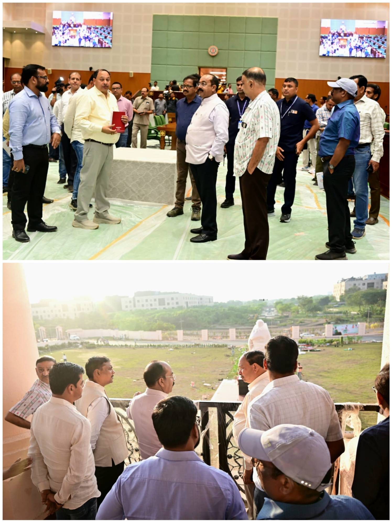 उप मुख्यमंत्री श्री साव ने नवीन विधानसभा परिसर में पूर्व प्रधानमंत्री स्वर्गीय श्री अटल बिहारी बाजपेयी की मूर्ति के अनावरण स्थल, विधानसभा के सदन और मंचीय कार्यक्रम के स्थल का जायजा लेकर अधिकारियों को आवश्यक निर्देश दिए। नवा रायपुर के सेक्टर-19 में मंत्रालय (महानदी भवन) और विभागाध्यक्ष कार्यालय (इंद्रावती भवन) के पीछे 51 एकड़ परिसर में विधानसभा का नया भवन बनाया गया है।