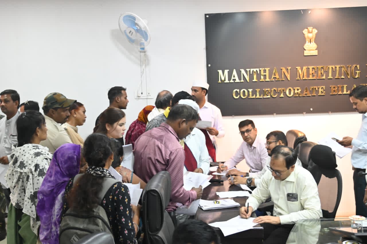 बिलासपुर // कलेक्टर संजय अग्रवाल ने साप्ताहिक जनदर्शन में दूर-दराज से पहुंचे ग्रामीणों की फरियाद सुनी। उन्होंने एक-एक कर प्रत्येक व्यक्ति से मुलाकात कर उनका आवेदन लिया और आवश्यक कार्रवाई के लिए मौजूद अधिकारियों को निर्देश दिए। जनदर्शन में जिला पंचायत सीईओ श्री संदीप अग्रवाल एवं निगम आयुक्त श्री अमित कुमार ने भी लोगों की समस्याएं सुनी। लोगों ने जनदर्शन में व्यक्तिगत एवं सामुदायिक हित से जुड़े विषयों को लेकर जिला प्रशासन का ध्यान आकृष्ट करते हुए आवेदन दिया।