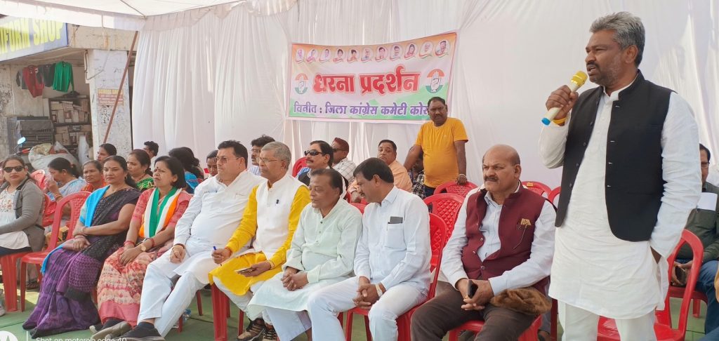 कोरबा ·//· प्रदेश कांग्रेस कमेटी के निर्देश पर जिला कांग्रेस कमेटी द्वारा टीपी नगर चौक में एक दिवसीय धरना प्रदर्शन कर इंडिया गठबंधन के 146 सांसदों के निलंबन के फैसले के खिलाफ विरोध प्रदर्शन किया।